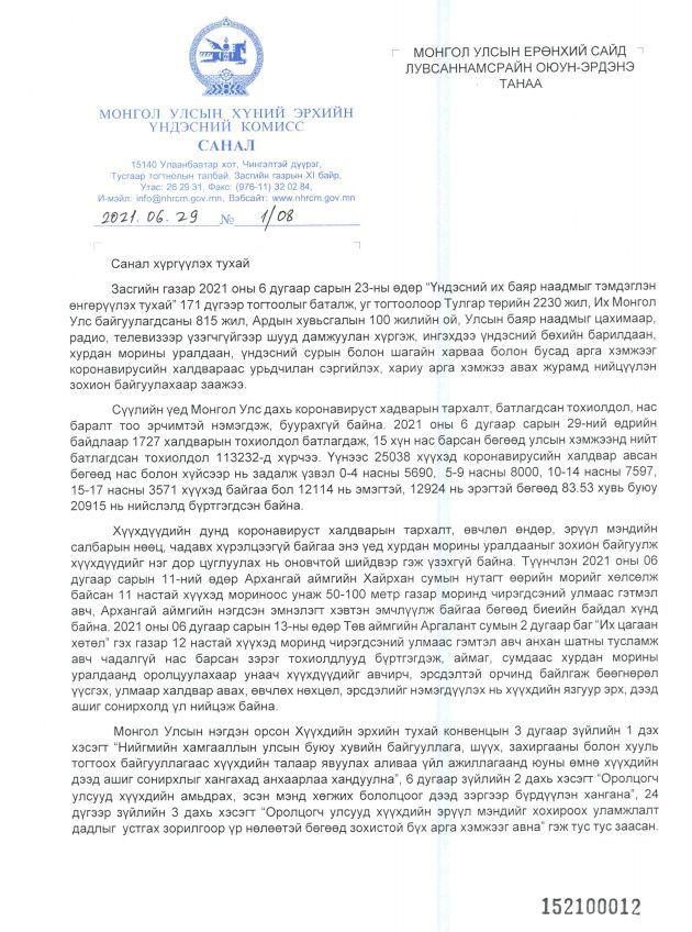 Үндэсний их баяр наадамд хурдан морь унах хүүхдүүийн эрх зөрчигдөж, халдвар авах эрсдэл өндөр байгаа талаар бид өмнө нь мэдээлж байсан билээ. Тэгвэл Хүний эрхийн Үндэсний Комиссоос Ерөнхий сайд Л.Оюун-Эрдэнэд ханджээ.