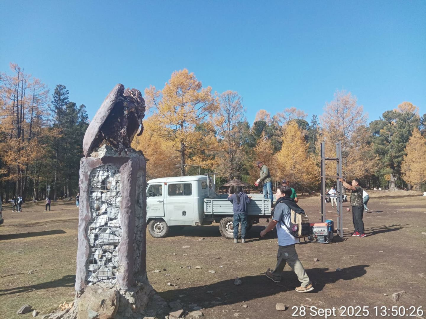 Богдхан уулын ДЦГ-ын Хамгаалалтын захиргаа, Хан-Уул дүүргийн ЗДТГ-н санаачлагаар Богдхан уулын Дугуй цагаан дээрх Богдхан уулын савдаг шүтээний дүрс бүхий Хангарьд шувууны хөшөөний баримлыг 2025 оны 9 болон 10 дугаар сард бүрэн шинэчиллээ.