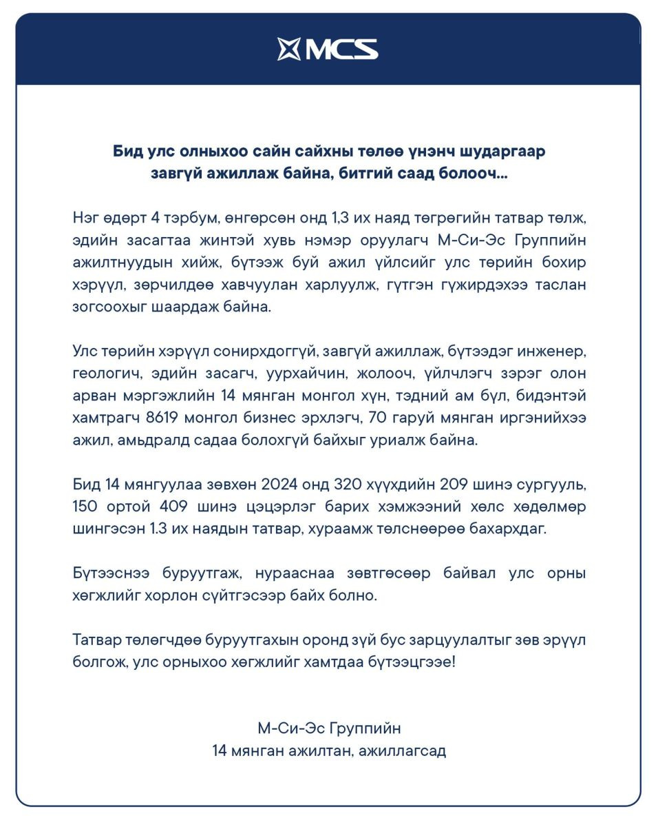 MCS групп мэдэгдэл гаргажээ.