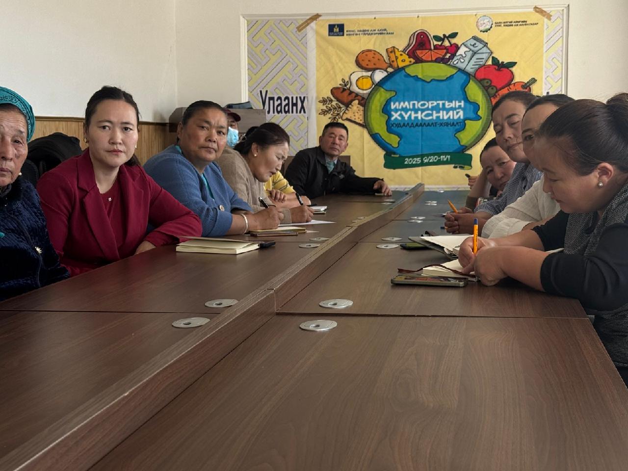 Сургалтын үеэр хүнсний бүтээгдэхүүн хадгалах, тээвэрлэх, худалдаалах үеийн эрүүл ахуйн шаардлага, бүтээгдэхүүний гарал үүслийг нягтлах, хэрэглэгчийн хариуцлага зэрэг асуудлыг ярилцав. “Импортын хүнсний худалдаа-хяналт” аян нь улсын хэмжээнд шат дараатайгаар үргэлжилж байгаа бөгөөд чанар, аюулгүй байдлын шаардлага хангаагүй импортын бүтээгдэхүүн борлуулахаас урьдчилан сэргийлэх, хяналт шалгалтын үр нөлөөг нэмэгдүүлэхэд чухал үүрэг гүйцэтгэж байна.