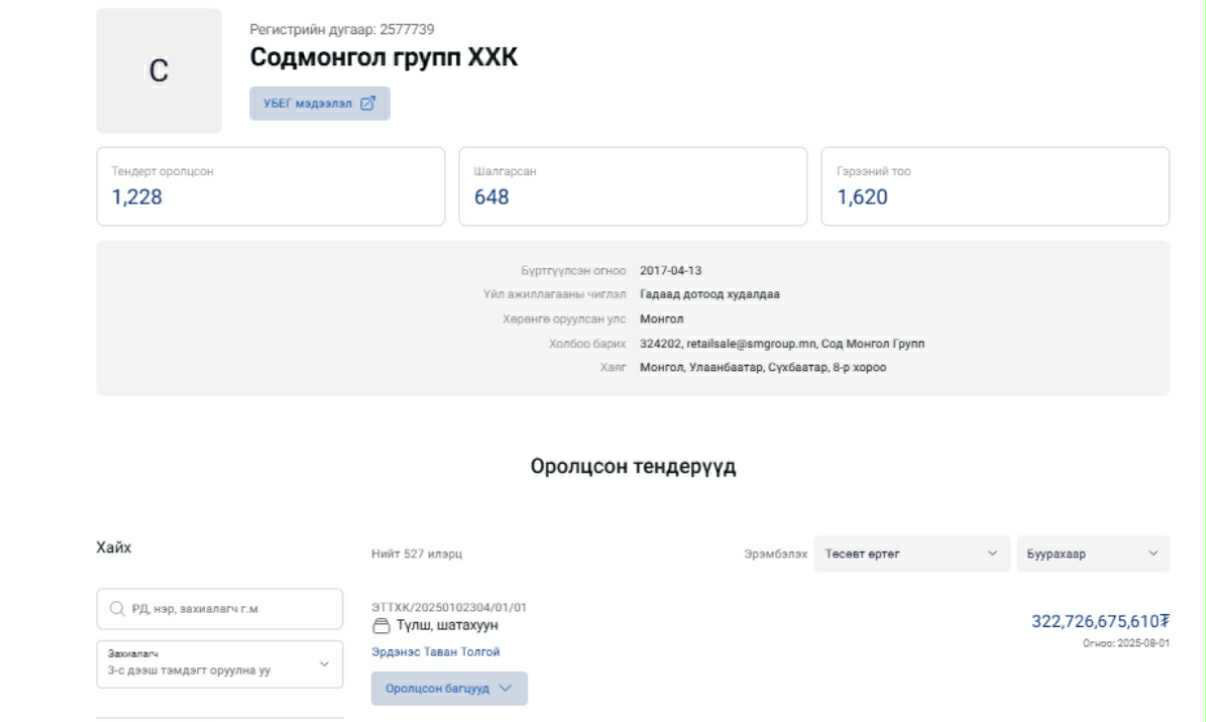 Жич: Ц.Анандбазар “Содмонгол групп”, “Интерстандарт нефть” гэх хоёр компаниараа “Эрдэнэт”-ээс 2019-2024 онд буюу таван жилийн хугацаанд 253 тэрбум төгрөгийн тендер цувуулж авч байсан. Харин нэг удаад 322 тэрбум төгрөгийн тендер авсан нь түүнд түүхэн мөч болж байна.