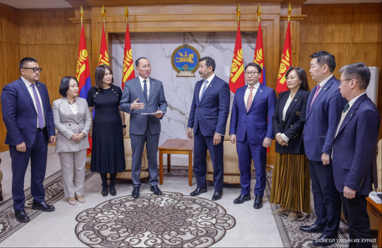 Улсын Их Хурлын гишүүн М.Бадамсүрэн нарын 33 гишүүн өнөөдөр (2025.11.14) Монгол Улсын Их Хурлын Чуулганы Хуралдааны Дэгийн тухай хуульд нэмэлт, өөрчлөлт оруулах тухай хуулийн төслийг Улсын Их Хурлын дэд дарга Ж.Бат-Эрдэнэд өргөн барилаа.