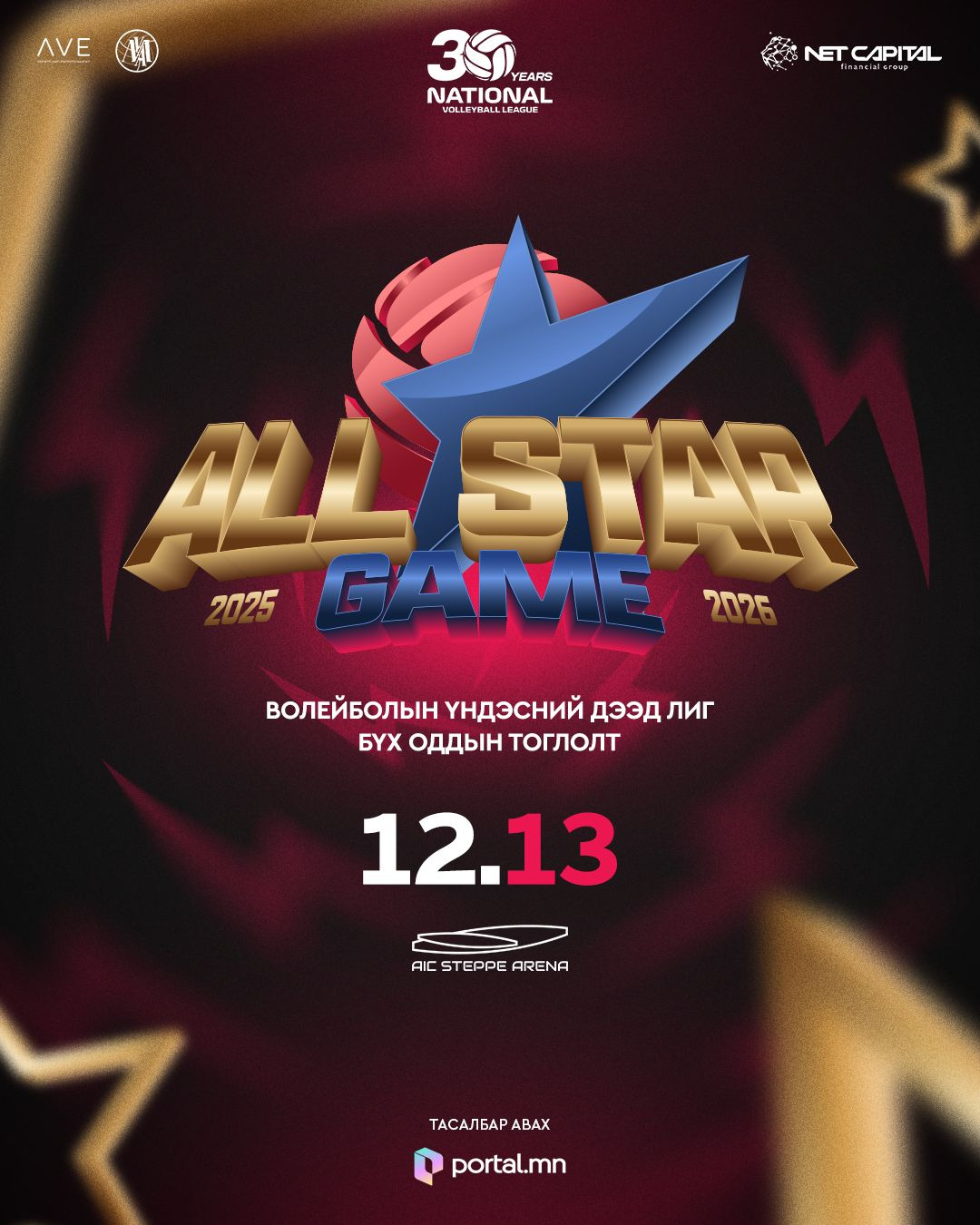 Монголын воллейболын "Бүх Оддын Тоглолт" арван хоёрдугаар сарын 13-ны өдөр STEPPE ARENA-д болно.