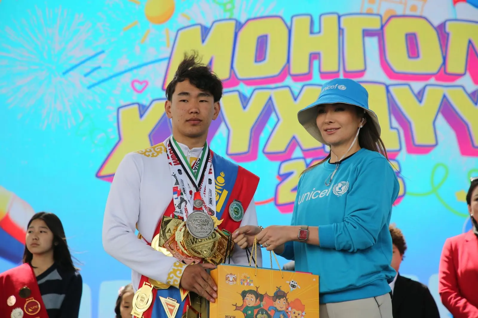 Хүүхдийн баярыг тохиолдуулан зохион байгуулсан “Монгол хүүхдүүд-2025” баярын нэгдсэн арга хэмжээний үеэр улсынхаа нэрийг өндөрт өргөж, ОУ-ын тэмцээн, уралдаанд амжилт үзүүлсэн хүүхдүүдэд ХГБХХЕГ-ын дарга Б.Баярсайхан болон бусад албаны хүмүүс баяр хүргэж, бэлэг гардууллаа.