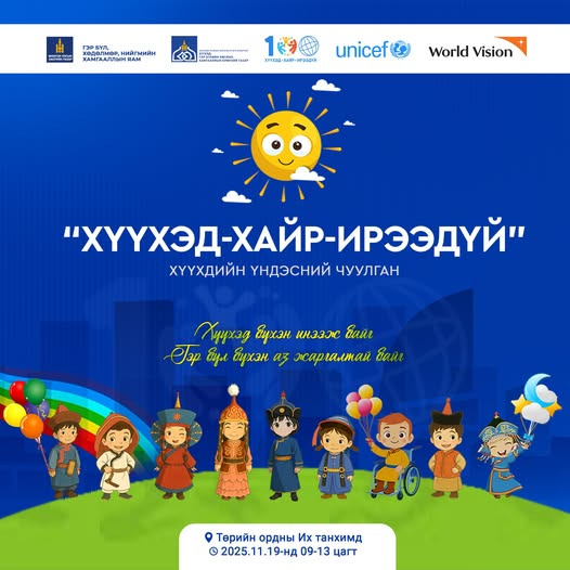 Монгол Улсад хүүхдийн байгууллага, хөдөлгөөн үүсэж, хөгжсөний түүхт 100 жилийн арга хэмжээний хүрээнд “Хүүхэд-Хайр-Ирээдүй” хүүхдийн үндэсний чуулганыг 2025 оны 11 дүгээр сарын 19-ний өдөр Төрийн ордны Их танхимд зохион байгуулах гэж байна.