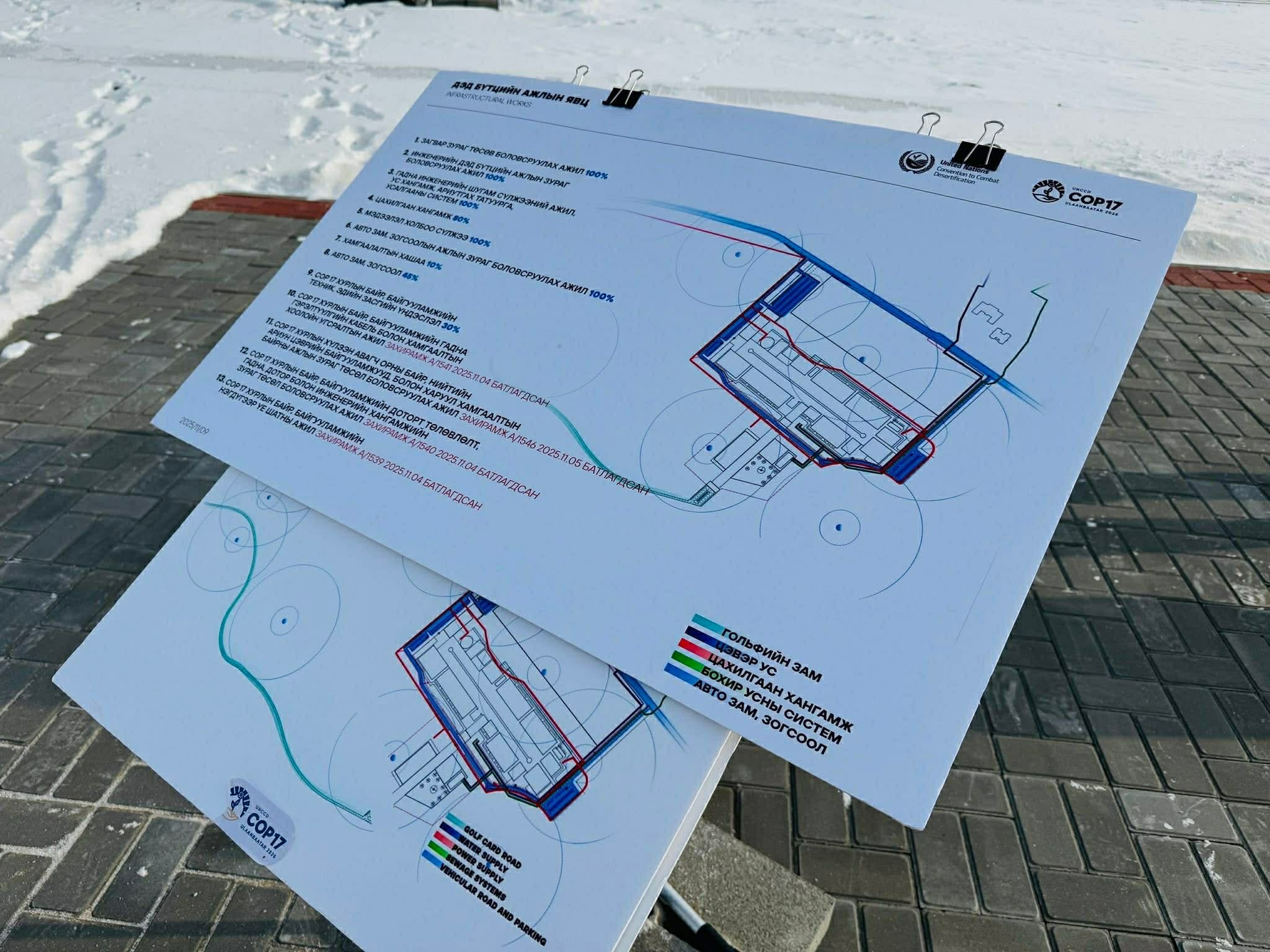 Авто зам болон зогсоол барих ажил 45 хувийн гүйцэтгэлтэй байна. Хүйтний эрч чангарсан учраас зам талбайн ажлуудыг түр хугацаанд зогсоожээ. Ирэх оны гуравдугаар сард үндсэн бүтээн байгуулалтууд өрнөх юм байна. НҮБ-ын Цөлжилттэй тэмцэх конвенцийн 17 дугаар бага хурал 2026 оны 08 дугаар сарын 17-28-ны өдрүүдэд Улаанбаатар хотноо болно. Бага хуралд 8000-12000 хүн оролцох төлөвтэй байгаа юм.