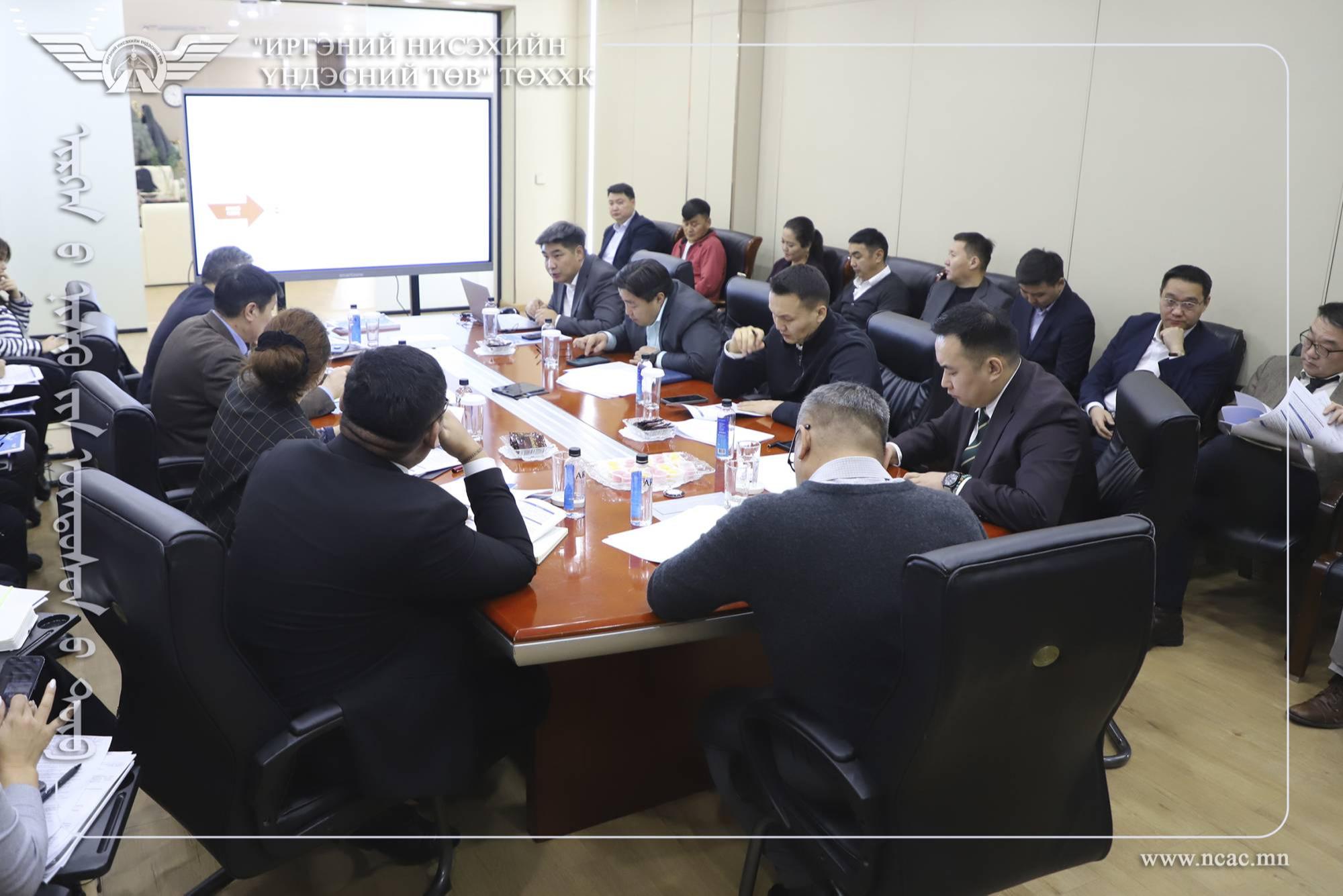 “Иргэний нисэхийн үндэсний төв” ТӨХХК-ийн үйлдвэрлэл үйлчилгээ хариуцсан менежер Э.Энхзориг болон Агаарын навигацийн үйлчилгээний газрын дарга Д.Баяртогтох, менежер, ахлах мэргэжилтэн нар 2025 оны 12 сарын 11-ны өдөр тус газрын харьяа Нислэгийн хөдөлгөөний үйлчилгээний алба (ИНД-172), Нисэхийн холбоо навигаци ажиглалтын алба (ИНД-171), Нисэхийн мэдээллийн үйлчилгээний алба (ИНД-175), Нислэгийн журам боловсруулалт шалгалтын нислэгийн алба (ИНД-173), Нислэгийн урсгал төлөвлөлтийн албадын 2025 оны ажлын гүйцэтгэл, тайлангийн нэгдсэн хуралдааныг амжилттай зохион байгууллаа.