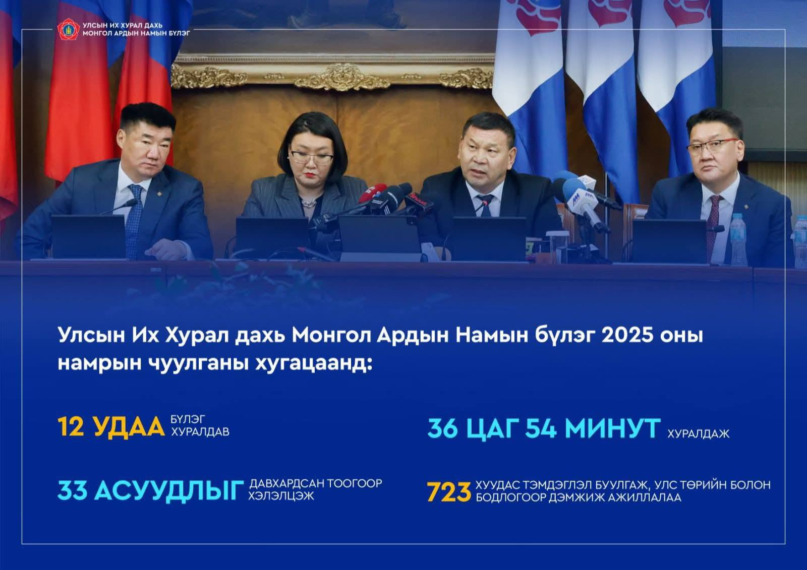 УИХ ДАХЬ МОНГОЛ АРДЫН НАМЫН БҮЛЭГ 2025 ОНЫ НАМРЫН ЧУУЛГАНЫ ХУГАЦААНД: