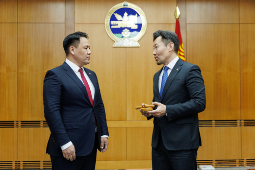 Монгол Улсын Их Хурлын дарга С.Бямбацогт өнөөдөр /2026.04.06/ Монголбанкны Ерөнхийлөгч С.Наранцогттой уулзаж, гадаад, дотоод зах зээлд үүсэж буй эдийн засгийн нөхцөл байдал, инфляц, үнийн өсөлт, вальютын нөөц болон цаг үеийн асуудлаар санал солилцлоо.