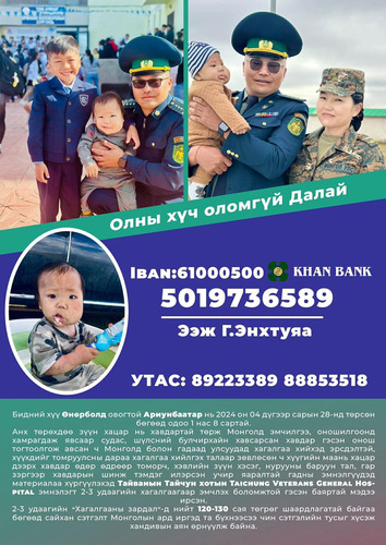Өнөрболдын Ариунбаатар хүү ой 8 сартай бөгөөд зүүн хацрын хэсэгт хавдартай төржээ. Эхний онош нь судас (цусны урсгалтай) болон шүлсний булчирхайн хавсарсан хавдар гэж оношлогдсон байна. Энэ өвөрмөц төрлийн хавдар нь хавдрын эсүүд шүлсний булчирхайд болон түүний ойролцоо судасны торлог бүтэцтэй хамт ургах шинжтэй бөгөөд хүүхдийн нүүр, хацар, амны тойргийн хэв шинж, хөгжлийг нарийн төвөгтэй болгодог.
