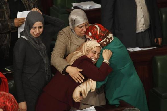 Тунисын парламентын ойн баярын дараа эмэгтэй гишүүд бие биедээ баяр хүргэв.