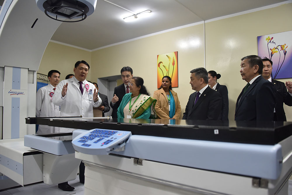 Парламентын дарга нар Бүгд Найрамдах Энэтхэг Улсын Засгийн газраас тус төвд хандивласан зайн туяа эмчилгээний “Бабатрон II” аппарат, туяа эмчилгээний төлөвлөлтийн симулятор аппаратыг ашиглалтад хүлээлгэн өгөх арга хэмжээний нээлтийн ёслолд оролцсон юм.