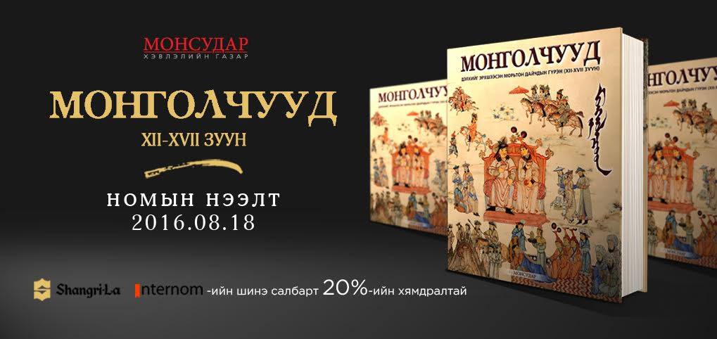 Энэхүү XII-XVII зууны түүхийг өгүүлэх дөрөвдүгээр боть нь “Монголчууд: Дэлхийг эрхшээсэн морьтон дайчдын гүрэн” хэмээх нэртэйгээр гарч буй бөгөөд номын нээлтийг 2016/08/18-ны 16 цагт Shangri La Mall-ын 3 давхарт Интерном номын дэлгүүрийн шинэ салбарын нээлттэй хамтатган хийхээр товоо зарлалаа.