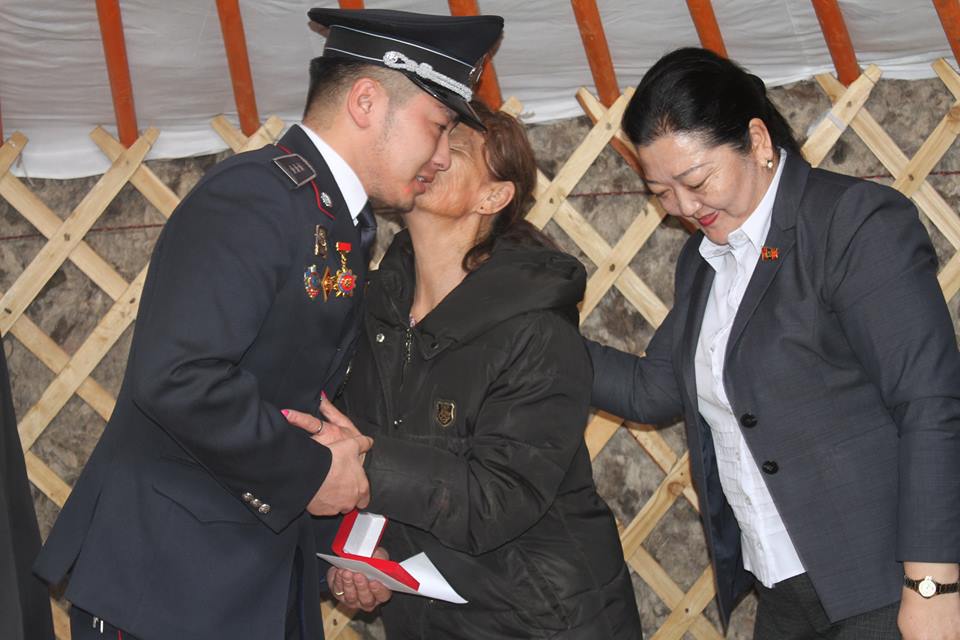 Өнгөрсөн нэгдүгээр сард Сонгинохайрхан дүүргийн цагдаагийн II хэлтсийн эрүүгийн төлөөлөгч, цагдаагийн дэслэгч Г.Ганбаяр тус дүүргийн 25 дугаар хорооны иргэн Ц.Найманжингийн эзэмшлийн өвлийн сууцанд гал гарч дотор нь унтаж байсан дөрвөн иргэнийг галын аюулаас аварсан билээ. Түүний гавьяат үйлсийг Монголын улаан загалмайн нийгэмлэгээс сайшаан таван ханатай гэр бэлэглэсэн.