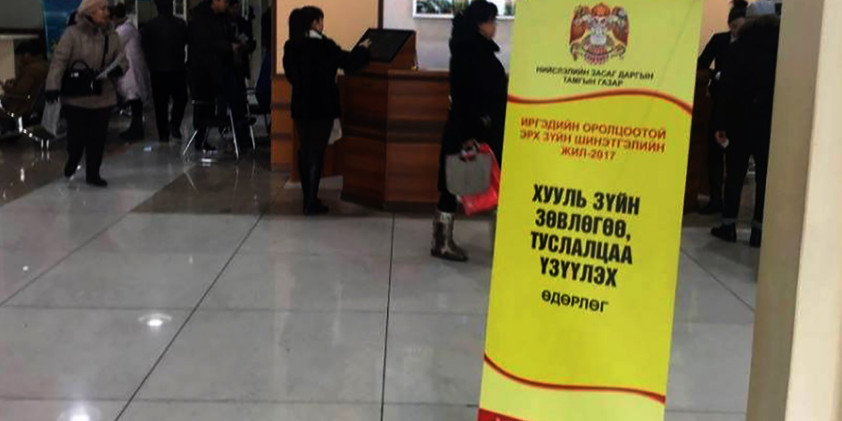 2017 оныг “Иргэдийн оролцоотой эрх зүйн шинэтгэлийн жил” болгон зарласан билээ. Үүний хүрээнд Нийслэлийн Засаг даргын Тамгын газрын Хууль эрх зүйн хэлтэс Монголын өмгөөлөгчдийн холбоотой хамтран сард нэг удаа иргэдэд хууль, эрх зүйн үнэ төлбөргүй зөвлөгөө өгөх өдөрлөг зохион байгуулж байгаа юм. Энэ удаагийн өдөрлөгийг дөрөвдүгээр сарын 20-ны өдөр буюу маргааш Сүхбаатар, Чингэлтэй дүүргийн Засаг даргын Тамгын газарт өглөө 09.00-17.00 цагийн хооронд зохион байгуулахаар болов.