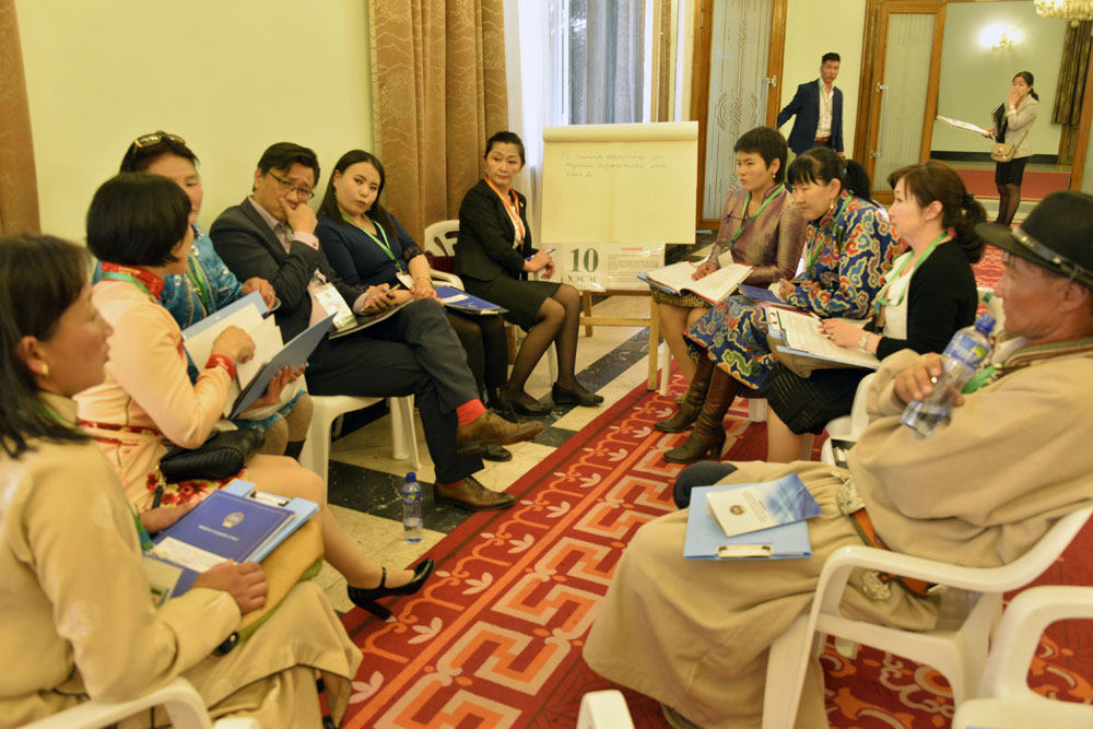 Зөвлөлдөх санал асуулгын эхний сэдэв буюу “Улсын Их Хурал, Засгийн газрын эрх мэдлийн хяналт-тэнцлийг хангах” талаархи сэдвийн хэлэлцүүлэг 10.00 цагт эхэлж, оролцогчид тус бүртээ 15 хүнтэй 49 бүлэгт хуваагдан хэлэлцлээ.