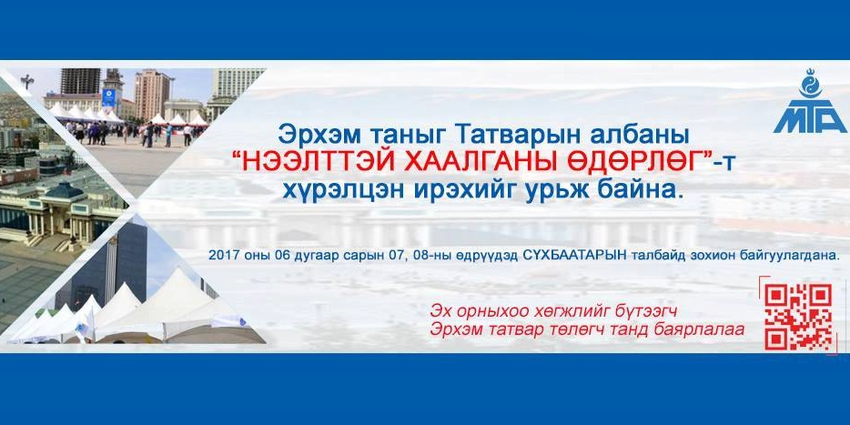 Сангийн яамын Нээлттэй хаалганы өдөрлөг энэ сарын 7-8-нд Жанжин Д.Сүхбаатарын талбайд болно. Энэ үеэр тээврийн хэрэгслийн албан татвар, төлбөрийг харьяалал харгалзахгүй /торгуульгүй/ төлөх боломжтой юм байна. Тээврийн хэрэгслийн албан татвар, төлбөр төлөх хуулийн хугацаа 2017 оны зургаадугаар сарын 1-ний өдрөөр дуусгавар болсон. Тиймээс тээврийн хэрэгслийнхээ албан татварыг хугацаандаа төлөөгүй жолооч нар маргааш төв талбайд болох өдөрлөгийн үеэр төлбөрөө ямар нэгэн торгуульгүйгээр төлөх бүрэн боломжтой. Албан татвар, төлбөр төлөөгүй тээврийн хэрэгслийг замын хөдөлгөөнд оролцуулахгүй бөгөөд дэлгэрэнгүй мэдээллийг 1800-1288, 7011-0705 дугаараас лавлана уу гэж нийслэлийн Татварын газраас мэдээллээ.
