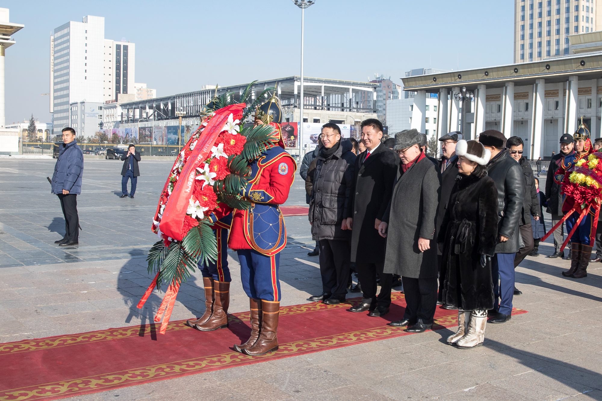 Монгол Улс анхдугаар Үндсэн хуулиа баталж, Бүгд Найрамдах Улсаа тунхагласны 93 жилийн ойг тохиолдуулан УИХ-ын дэд дарга Л.Энх-Амгалан, Ерөнхий сайд У.Хүрэлсүх болон УИХ, Засгийн газрын гишүүд жанжин Д.Сүхбаатарын хөшөөнд цэцэг өргөж, Их эзэн Чингис хааны хөшөөнд хүндэтгэл үзүүллээ.