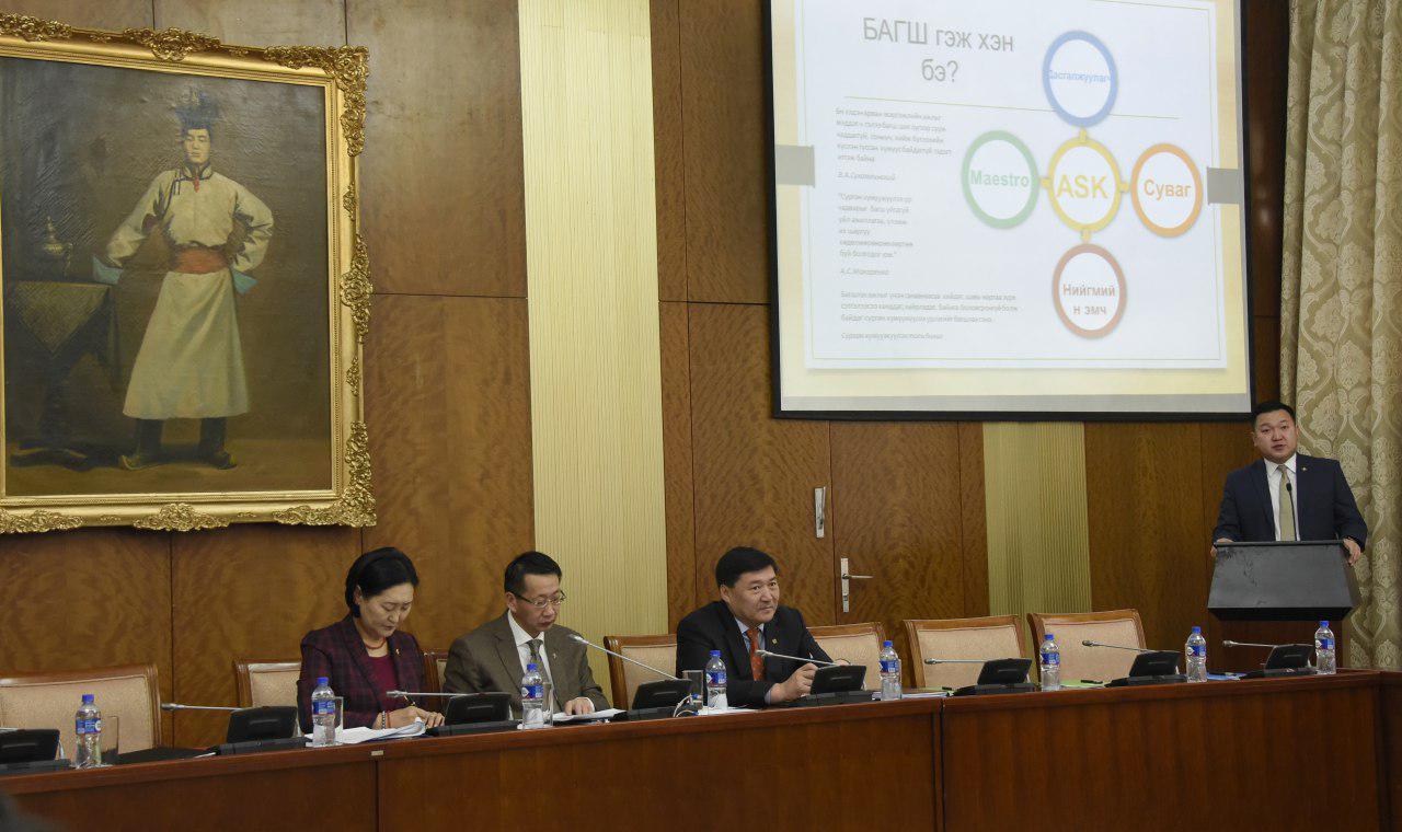 Мөн “Багшийн хөгжлийн асуудлаар бусад улс орнуудын хуулийн зохицуулалт” сэдвээр Боловсролын хүрээлэнгийн захирал М.Итгэл, “Багшийн хөгжлийн төвийн үйл ажиллагаа, цаашдын чиг хандлага” сэдвээр МУБИС-ийн зөвлөх, академич Б.Жадамба, БМДИ-ийн албаны дарга Ш.Оюунцэцэг нар илтгэл тавьсан юм.