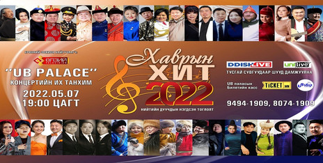 "Хаврын хит 2022" нийтийн дуучдын нэгдсэн тоглолт 2022.05.07-ны 19:00 цагаас UB PALACE-ийн концертын их танхимд болно.