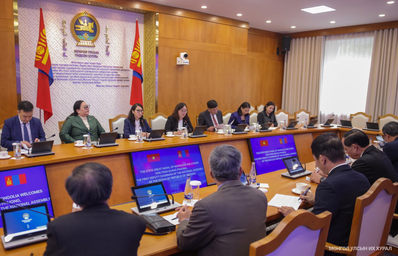 Улсын Их Хурлын гишүүн, Монгол-Вьетнамын парламентын бүлгийн дарга Ж.Баярмаа болон бүлгийн гишүүд өнөөдөр /2025.10.01/ Бүгд Найрамдах Социалист Вьетнам Улсын Үндэсний Ассамблейн Тэргүүн дэд дарга Чан Куанг Фыөнг тэргүүтэй төлөөлөгчидтэй уулзлаа.