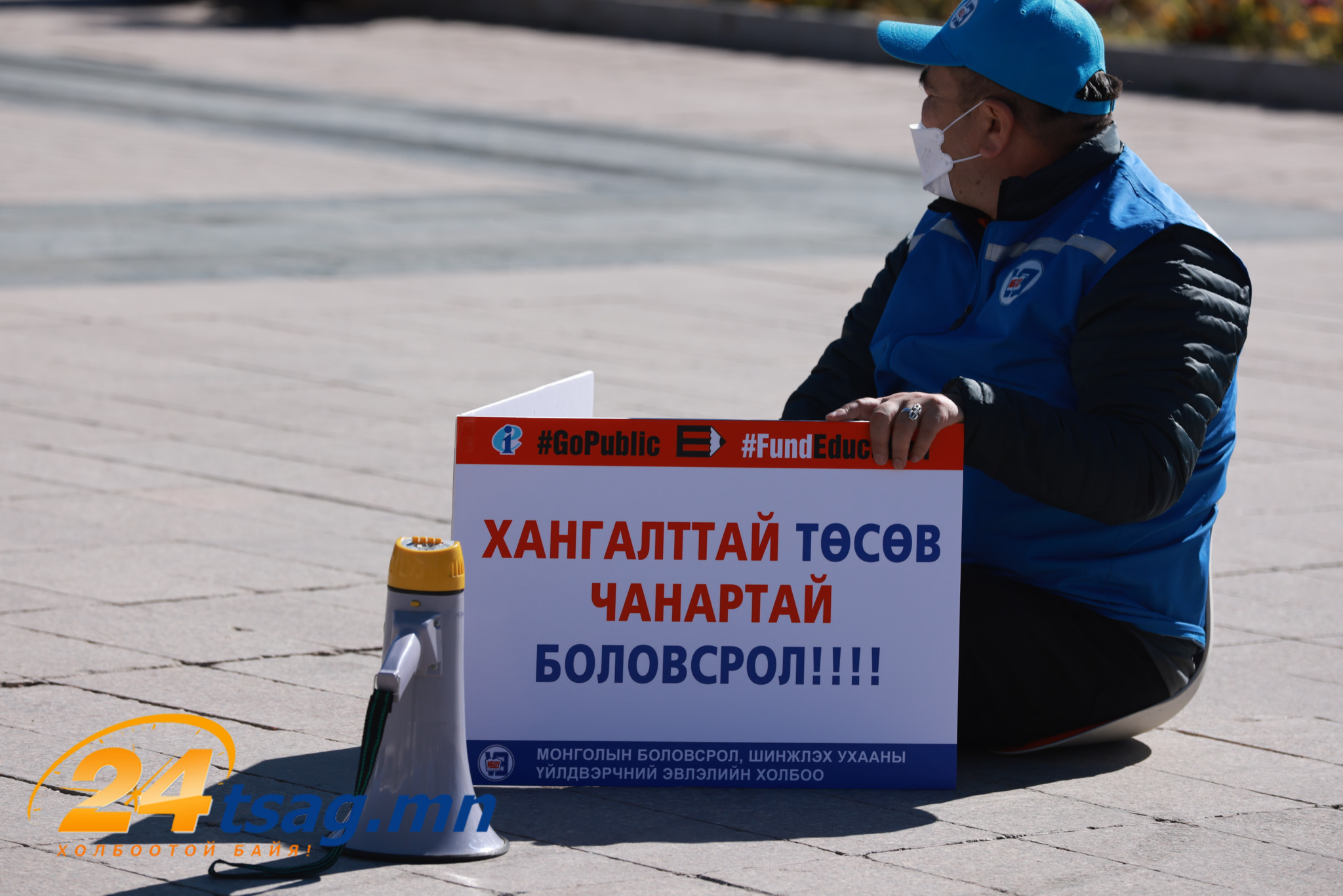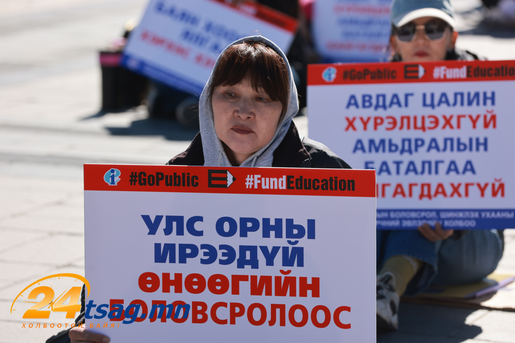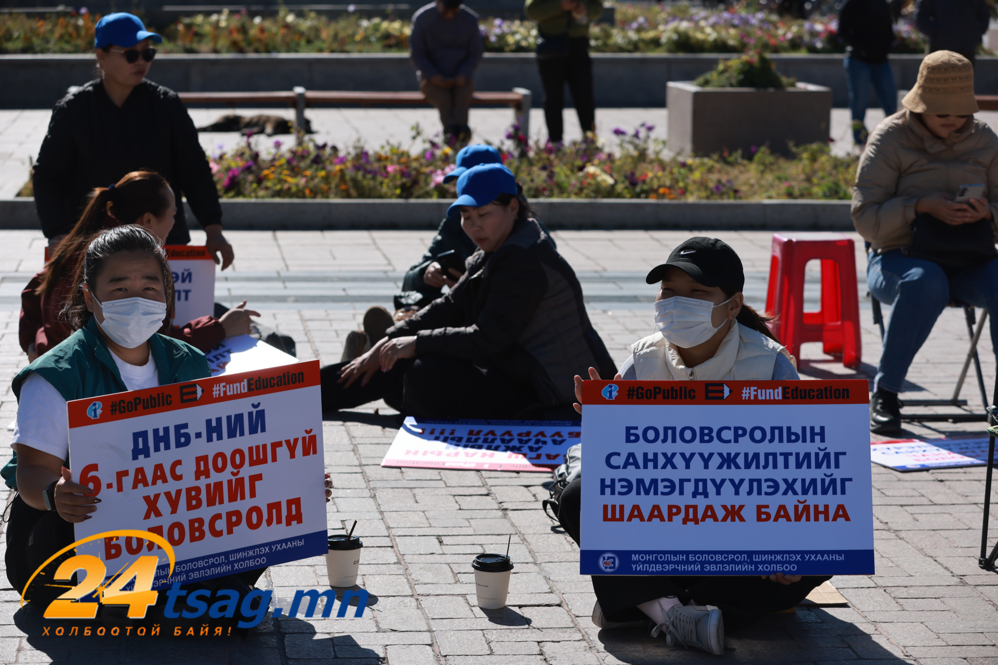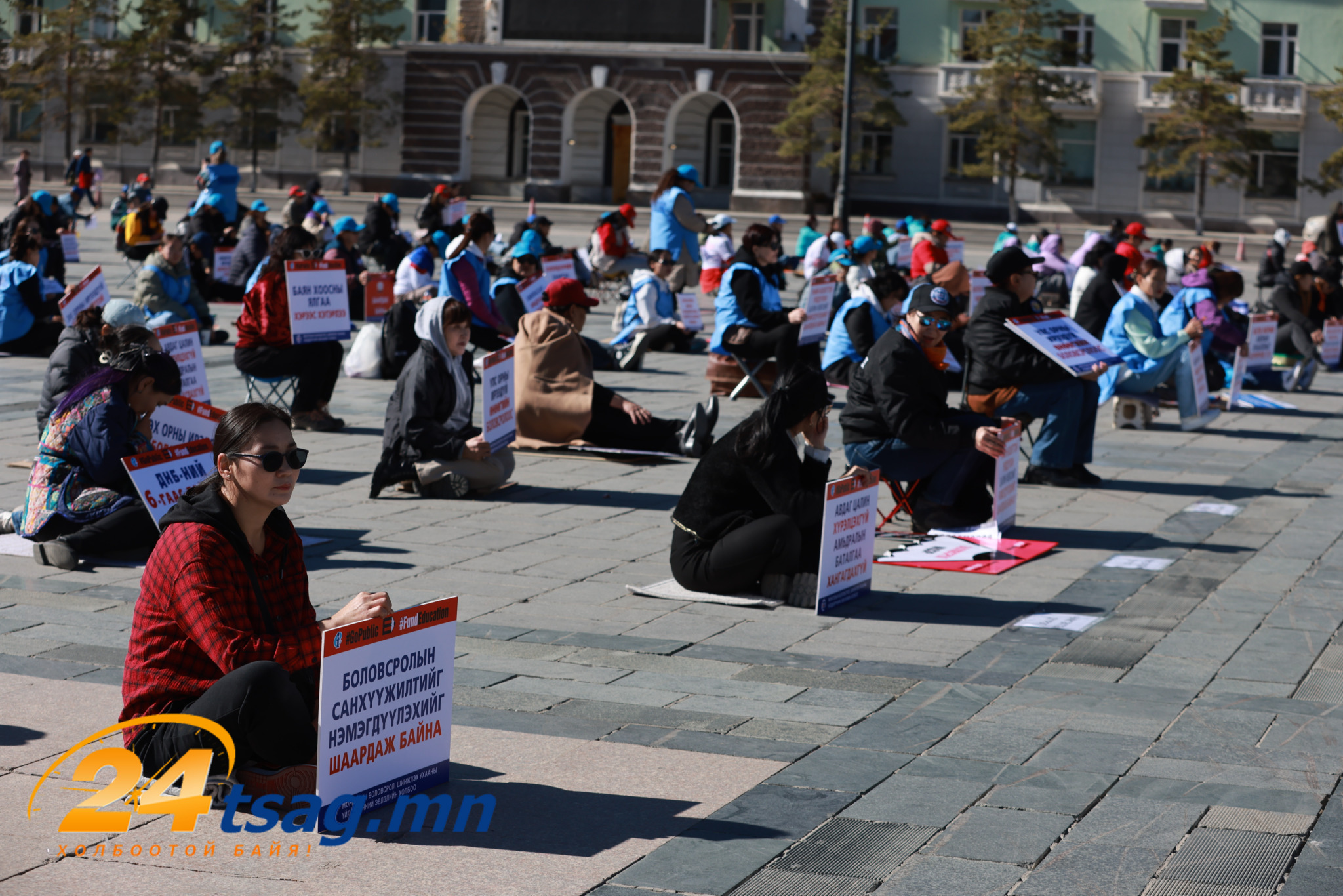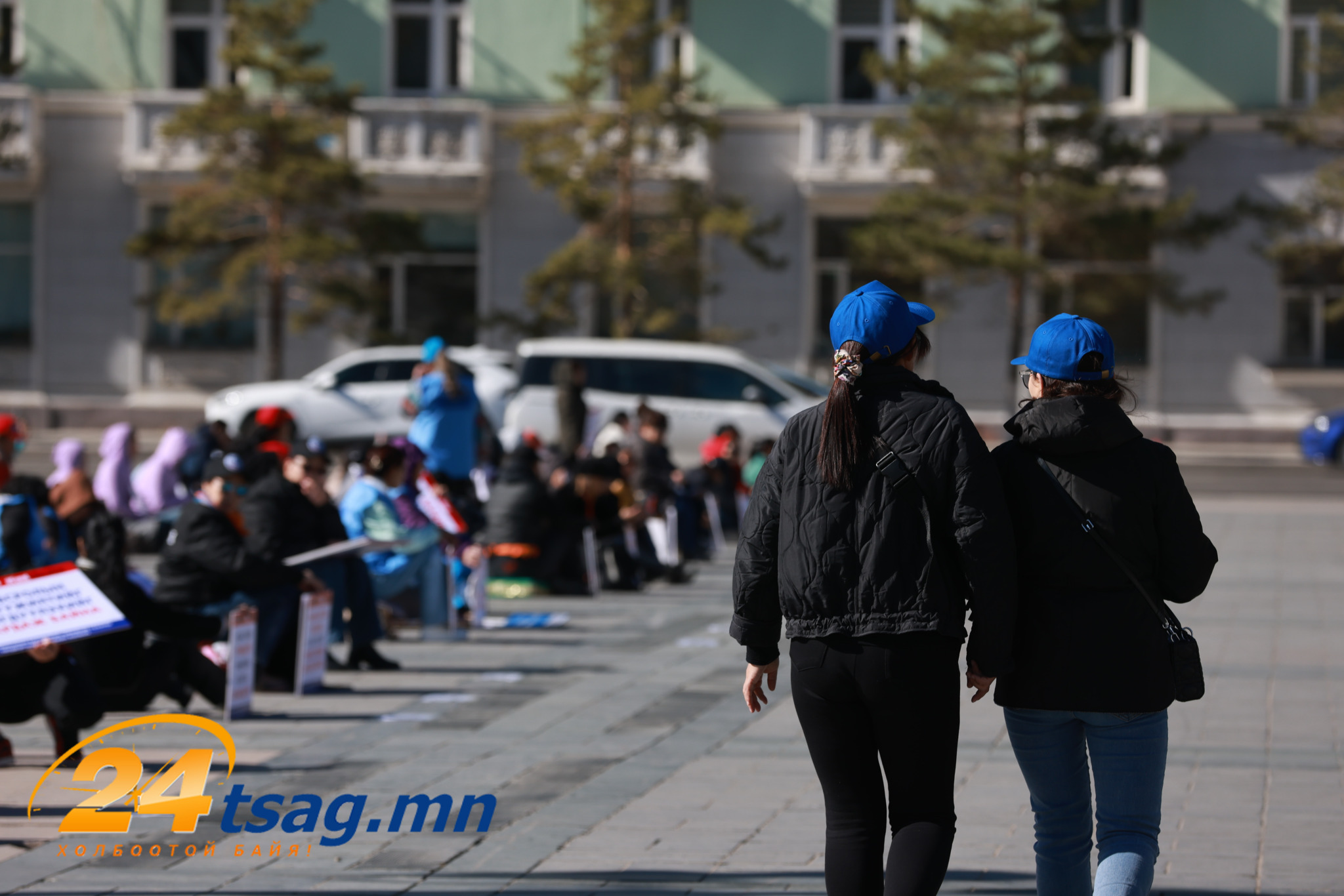 Боловсролын салбарын цалин хөлсийг нэмэгдүүлэхийг шаардсан багш нар Сүхбаатарын талбайд суулт хийлээ.