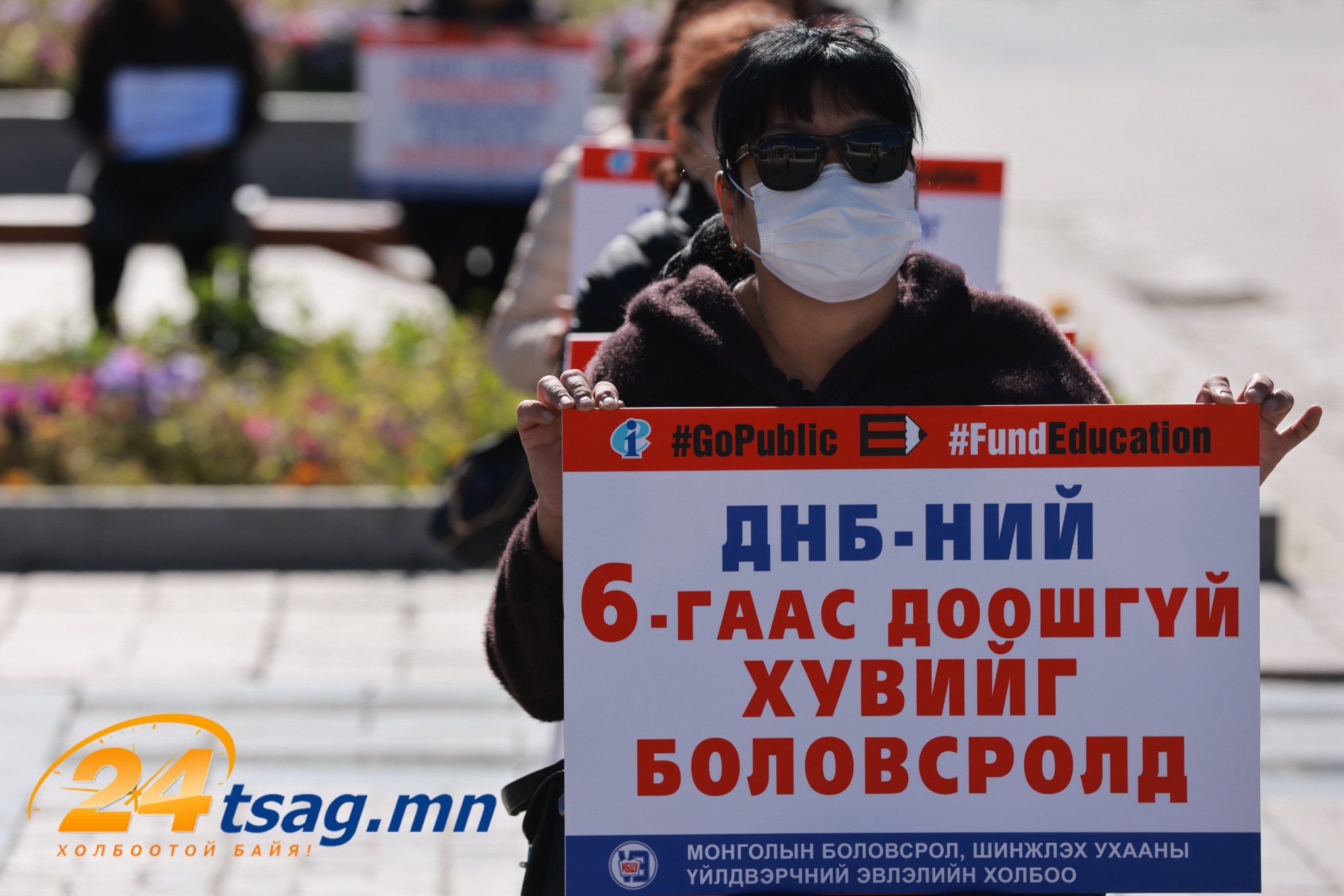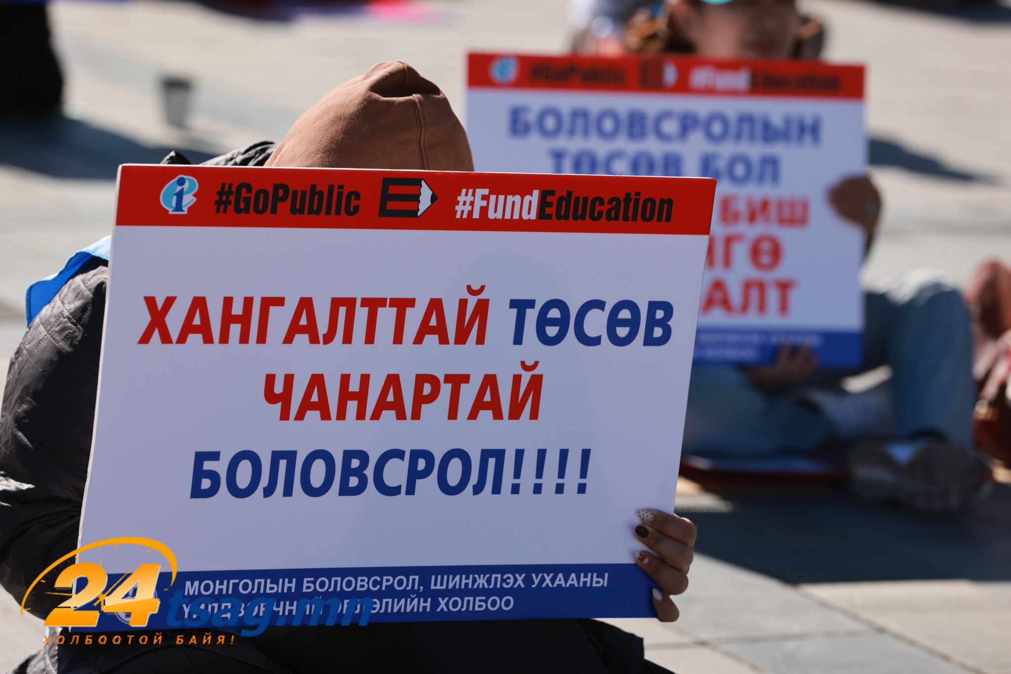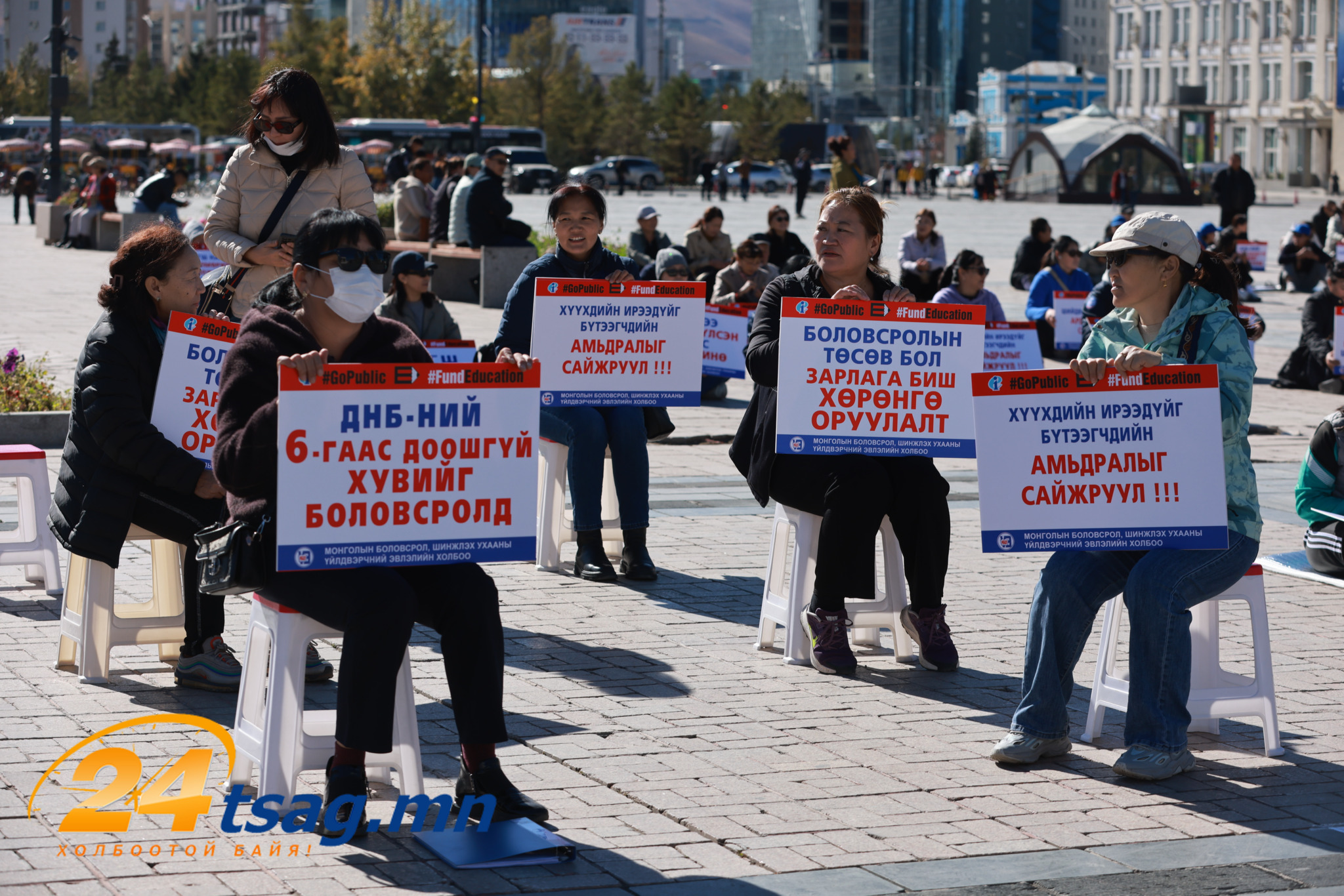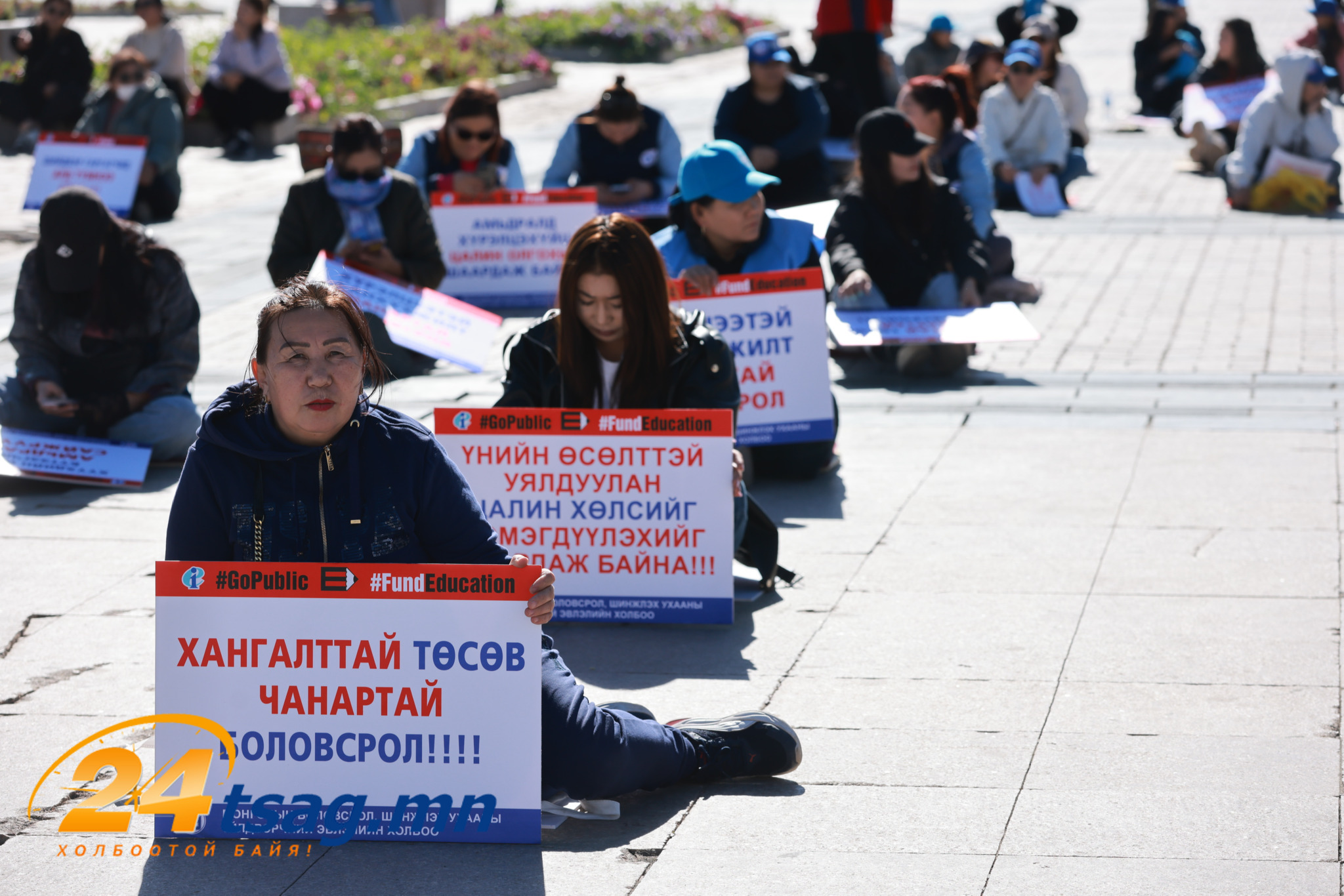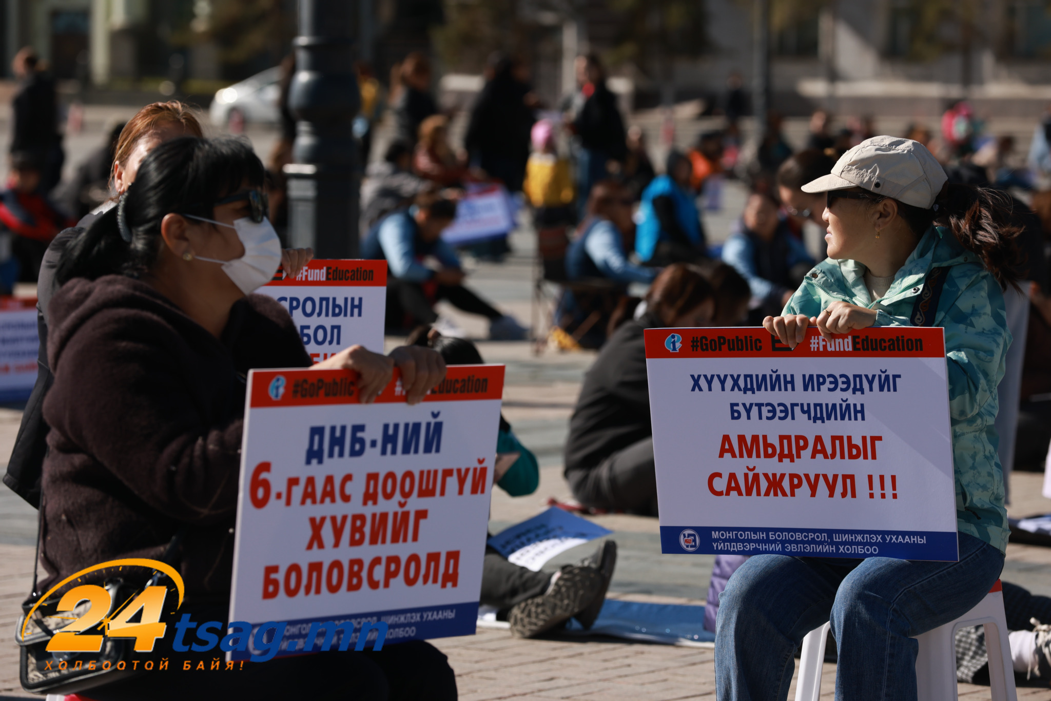 Боловсролын салбарын цалин хөлсийг нэмэгдүүлэхийг шаардсан багш нар Сүхбаатарын талбайд суулт хийлээ.