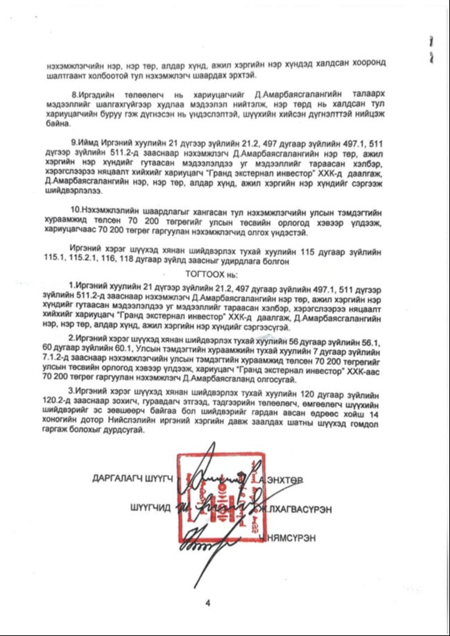 - Д.Амарбаясгаланд баримт, Б.Энхбаярт өшөө хорсол л байна
