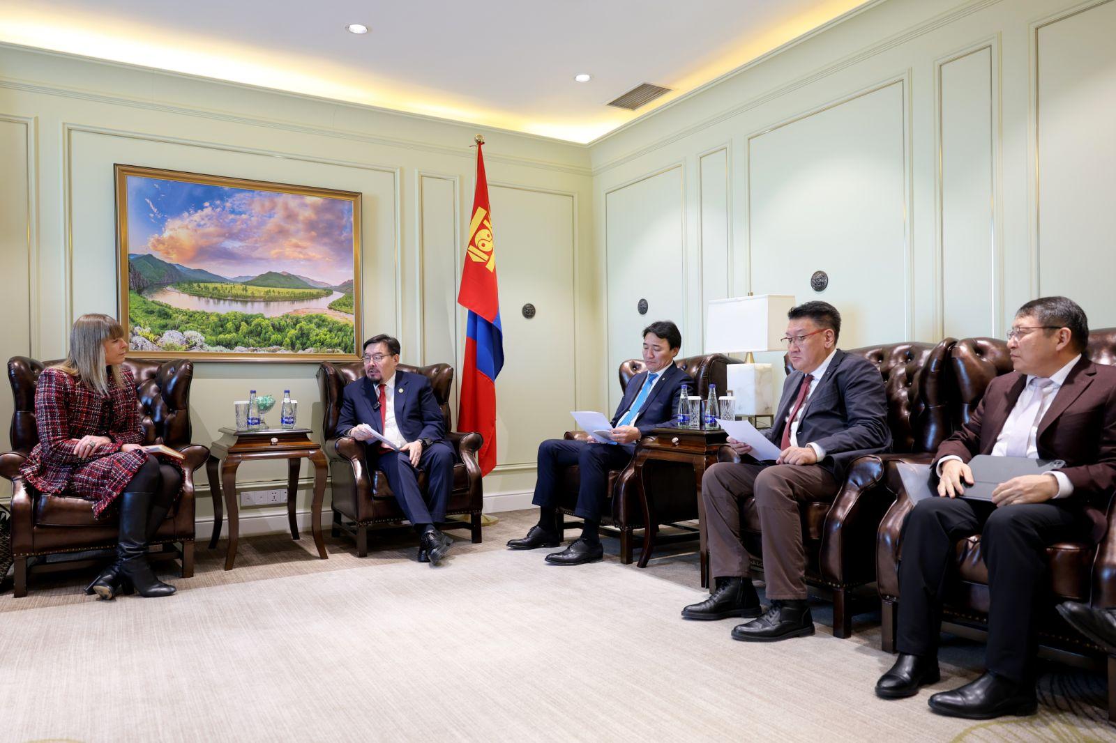 Өнгөрсөн Мягмар гарагт Ерөнхий сайд хатагтай Кейти Жаксонтай цахим уулзалт хийж, “Оюутолгой” төслөөс Монгол Улсад ирэх үр өгөөжийг нэмэгдүүлэх асуудлаар санал солилцсон бол түүнийг Монгол Улсад ирэх үеэр өнөөдөр биечлэн уулзаж хоёр талын байр суурийг бататгалаа.