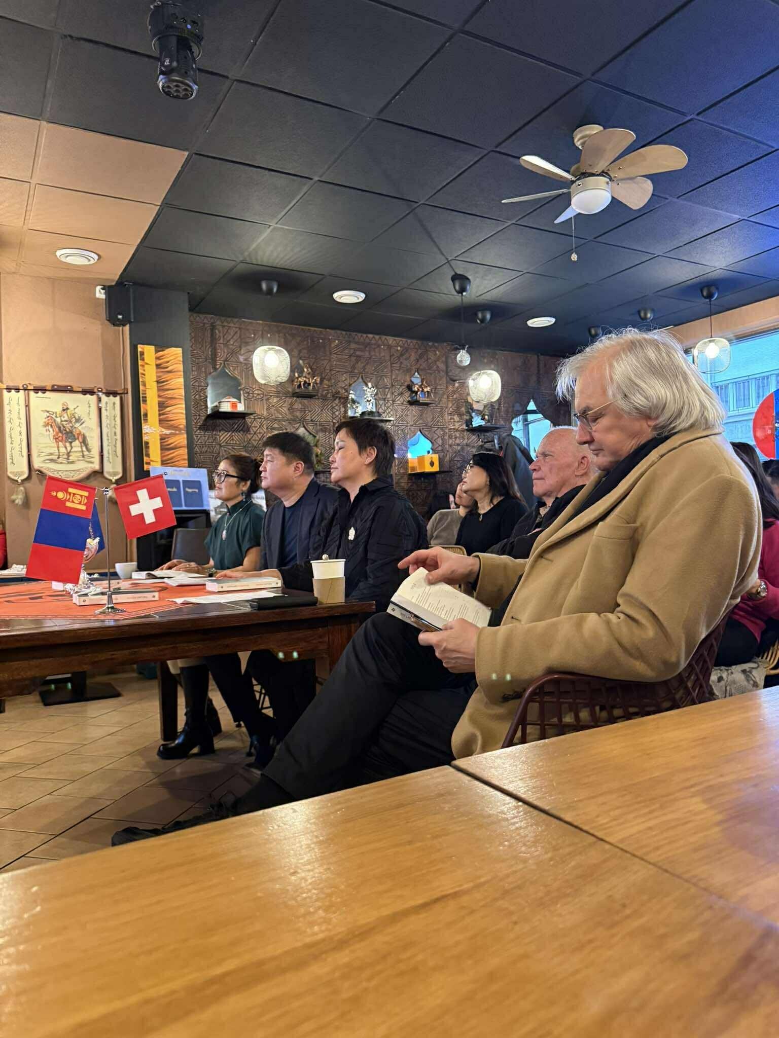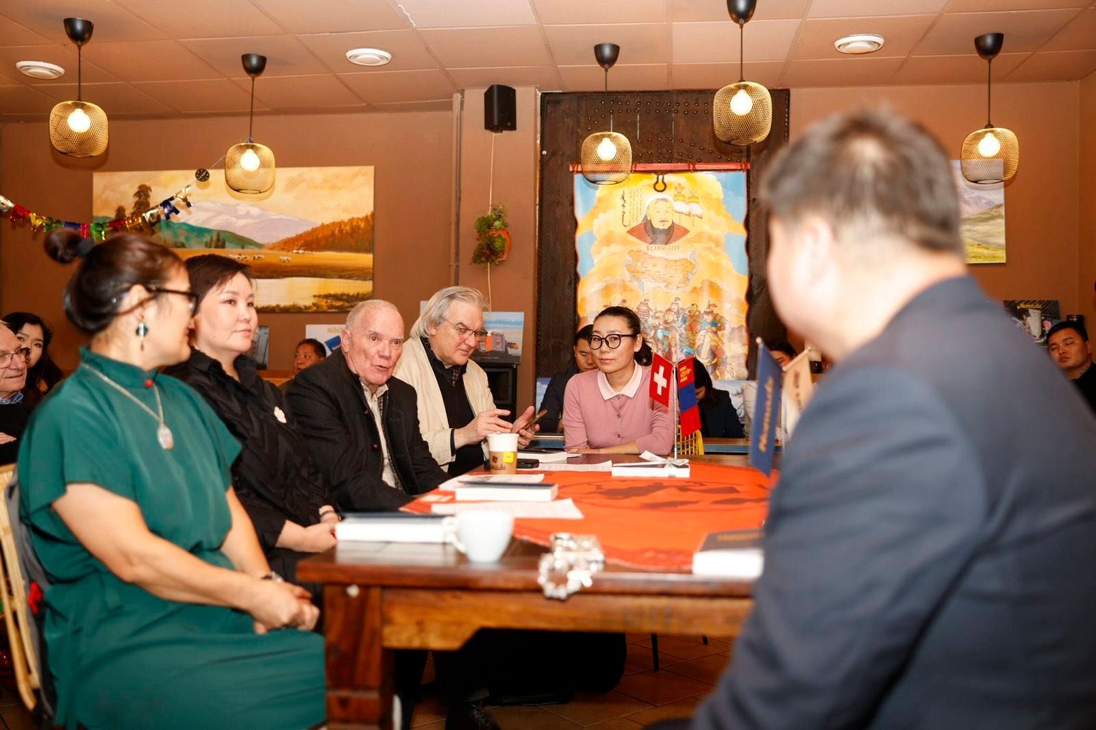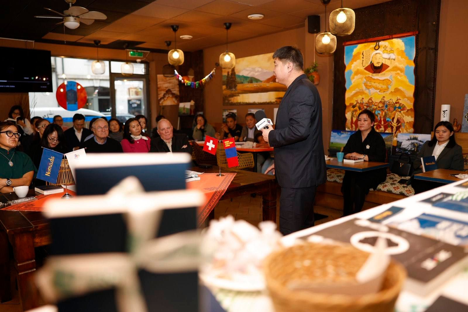 Номын нээлтийн ёслолд Монгол Улсаас Швейцарын Холбооны Улсад суугаа Онц бөгөөд бүрэн эрхт Элчин сайд, байнгын төлөөлөгч Д.Гэрэлмаа, Швейцар, Лихтенштайн Улсын мэдээллийн агентлагийн дарга Жон Муси, Швейцарын ахмад дайчин Люк Феллай, Эргэлт.мн мэдээллийн сайтын Ерөнхий эрхлэгч Э.Хүрэлбаатар, Ерөнхий редактор Б.Энхмарт тэргүүтэй эрхэм зочид, номын зохиогчид, Швейцарын Холбооны Улсад суугаа монгол иргэд, оюутнууд ирж оролцлоо. Номын нээлт Швейцарын Холбооны Улсад үйл ажиллагаа явуулдаг "Ulaanbaatar" ресторанд болсон юм.