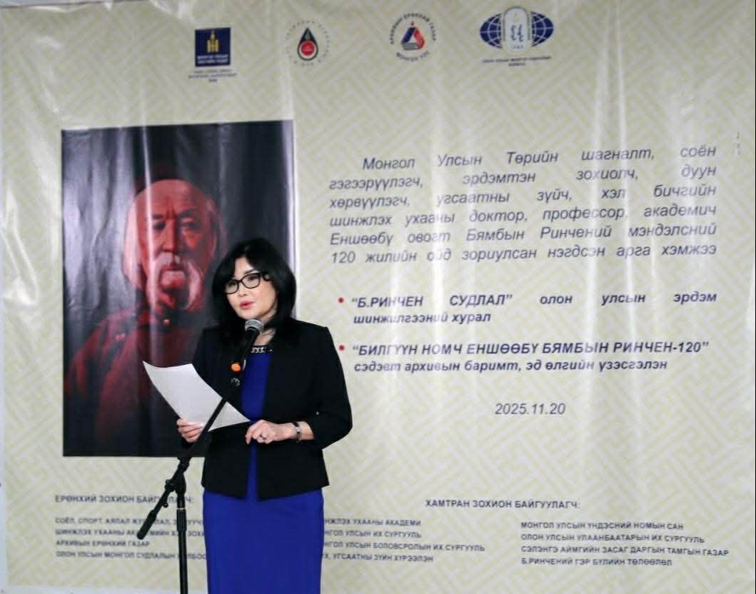 Архивын ерөнхий газраас Монгол Улсын Төрийн шагналт, соён гэгээрүүлэгч, нийгмийн нэрт зүтгэлтэн, академич Бямбын Ринченгийн мэндэлсний 120 жилийн ойг тохиолдуулан “Билгүүн номч, Еншөөбү Бямбын Ринчен-120” сэдэвт архивын баримтын үзэсгэлэнг өнөөдөр (2025.11.20) гаргалаа.