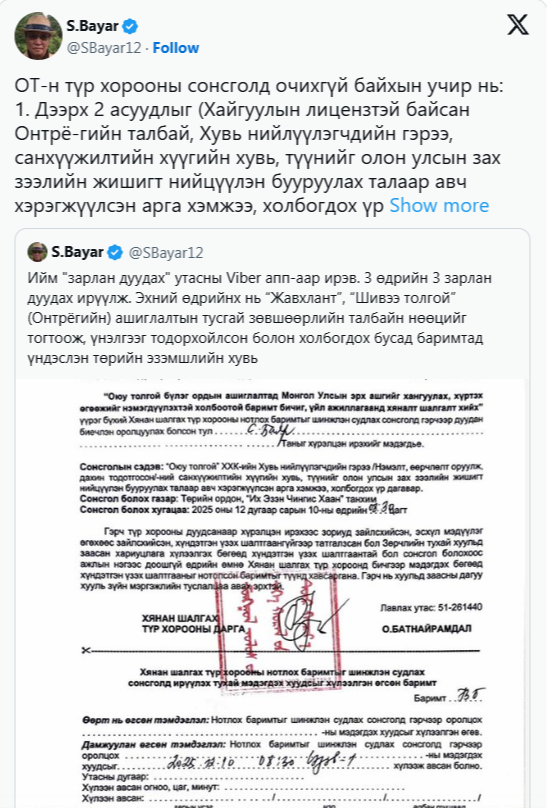 3. Оюутолгой нь эдийн засаг, бизнесийн том төсөл байхын зэрэгцээ хэмжээ, чиглэл, ач холбогдол зэргээрээ гурав дахь хөршийн хөрөнгө оруулалт, манай улсын аюулгүй байдал, хөгжилтэй шууд холбоотой тул үүнийг олон зуун хүн оролцсон нээлттэй сонсголоор бус, огт өөр бүрэлдэхүүн, агуулга, хэлбэрээр хаалттай хэлэлцэх нь манай улсын язгуур эрх ашигт илүү нийцнэ гэж үзэж буй. УИХ-ын зарим улстөрчид ямар арга хэмжээ хийх нь тэдний ухамсар, эрхийн асуудал. Тэр арга хэмжээнд нь очих эсэх нь иргэн миний ухамсар, эрхийн асуудал. Болгооно уу" гэжээ.