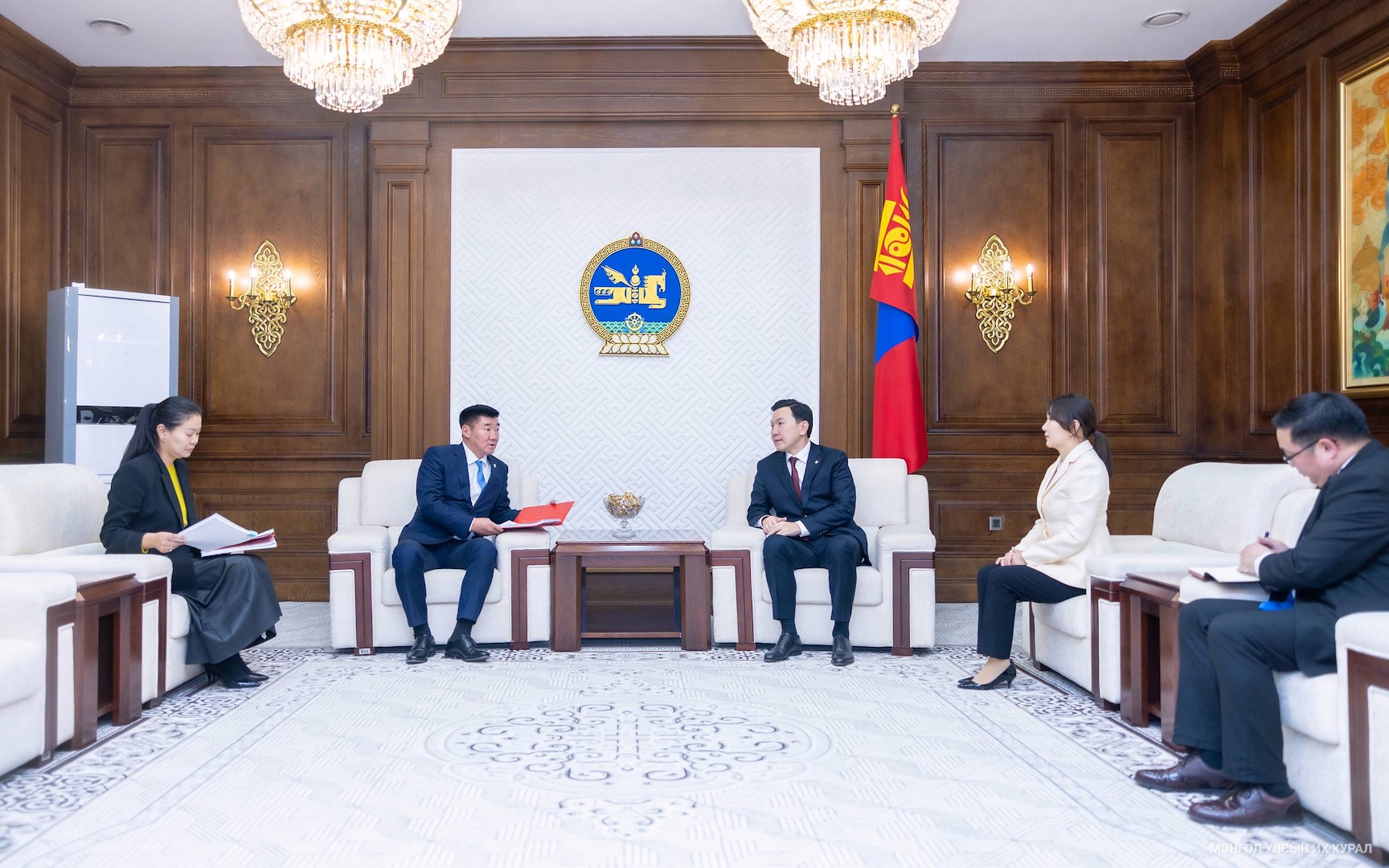 Монгол Улсын Их Хурлын дарга Н.Учралд өнөөдөр (2025.12.18) Монгол Улсын сайд, Засгийн газрын хэрэг эрхлэх газрын дарга С.Бямбацогт Төрийн өмчит хуулийн этгээдийн хувьцааг 2025-2028 онд биржээр олон нийтэд нээлттэй худалдах, төрийн өмчийг хувьчлах, өөрчлөн байгуулах үндсэн чиглэл батлах тухай Улсын Их Хурлын тогтоолын төслийг өргөн мэдүүлэв.
