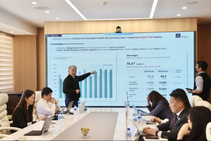 Эдийн засаг, хөгжлийн сайд Ж.Энхбаяр, дэд сайд С.Даваасүрэн, Төрийн нарийн бичгийн дарга И.Батхүү, Сангийн яамны удирдлагууд болох Дэд сайд Б.Хулан, Төрийн нарийн бичгийн дарга М.Баярмагнай болон яамдын газрын дарга нар Монгол Улсын макро эдийн засгийн өнөөгийн нөхцөл байдал, 2026 оны нэгдүгээр улирлын төлөв, цаашид хэрэгжүүлэх бодлогын талаар уулзалт зохион байгуулав.