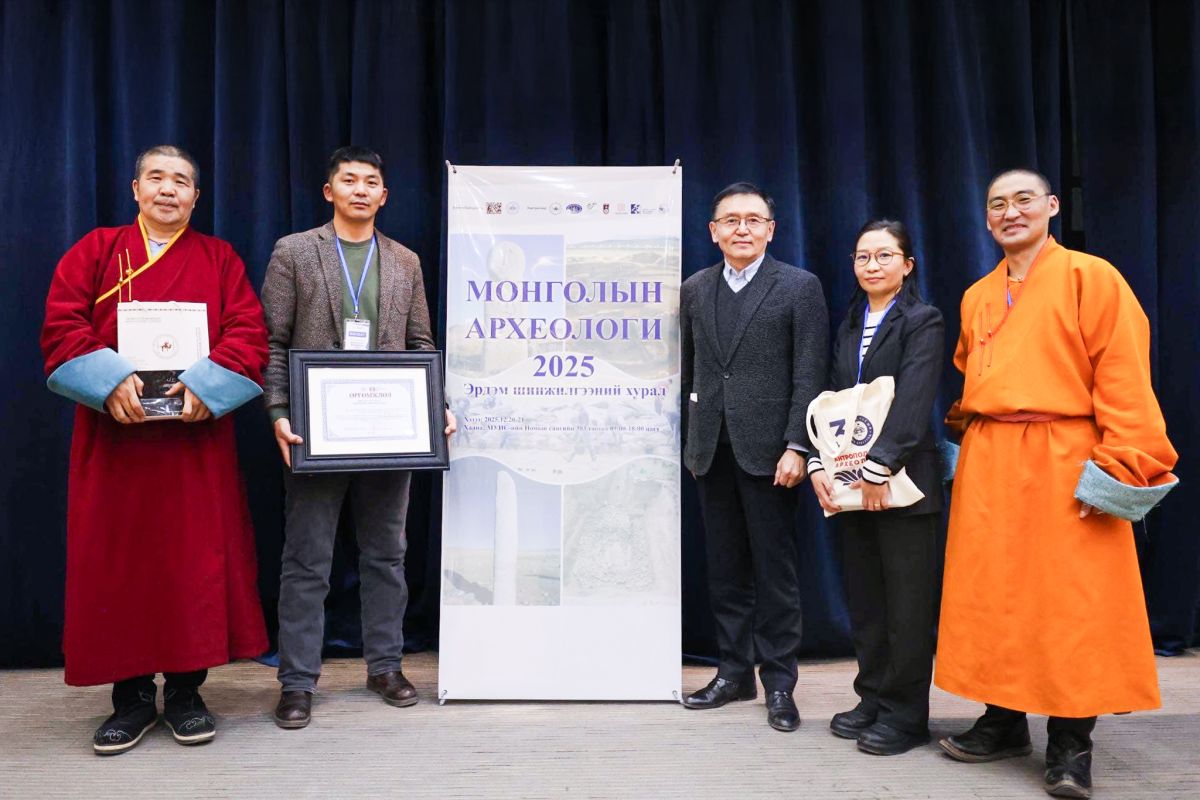 Монголын археологичид 2025 онд дотоод, гадаадын нийт 90 гаруй судалгааны төсөл хэрэгжүүлснээс энэхүү эрдэм шинжилгээний хуралд шилдэг 37 судалгааны ажил хэлэлцэгдэж, эрдэмтдийн санал хураалтаар 5 судалгааны ажлыг “ОНЫ ШИЛДЭГ”-ээр шалгарууллаа.