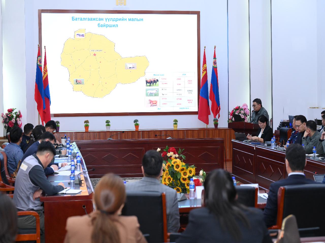 Хуралдаанд Аймгийн Хүнс, хөдөө аж ахуйн газар, Мал эмнэлгийн газраас цаг үеийн асуудлаар мэдээлэл өгөв. Өнгөрсөн хугацаанд олон улсын төсөл хөтөлбөр, орон нутгийн түншлэлээр Баяндэлгэрийн улаан үүлдрийн ухнын халуун үрээр 17 малчин өрхийн 605 ямаанд хээлтүүлэг хийж, гүн хөлдөөсөн үрээр 130 үнээнд зохиомол хээлтүүлэг хийх ажил зохион байгуулж, цаашид Түмэнцогт сумын үржлийн үхрийн цөм сүргийн үйл ажиллагааг дэмжих, өндөр ашиг шимт малын үр, хөврөл үр шилжүүлэн суулгах төв байгуулахаар зорин ажиллаж байгаа аж. Мөн “Нутгийн сүү” сүүний үйлдвэр байгуулан 2025 оны арваннэгдүгээр сараас үйл ажиллагаа явуулж эхэлжээ.