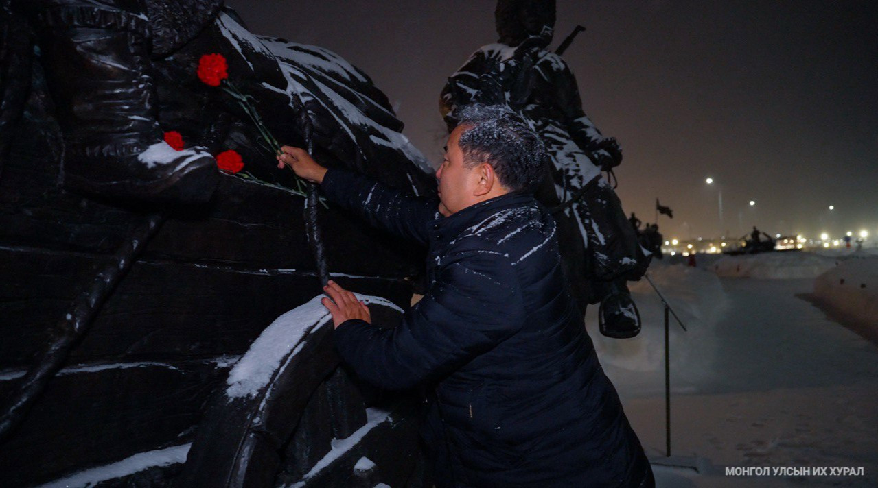 Монгол Улсын Их Хурлын дэд дарга Б.Пүрэвдорж өчигдөр (2026.02.11) ОХУ-ын Зэвсэгт хүчний төв сүм бүхий “Эх оронч” цэцэрлэгт хүрээлэнд босгосон монгол эрсийн хөшөөнд цэцэг өргөж, хүндэтгэл үзүүллээ.