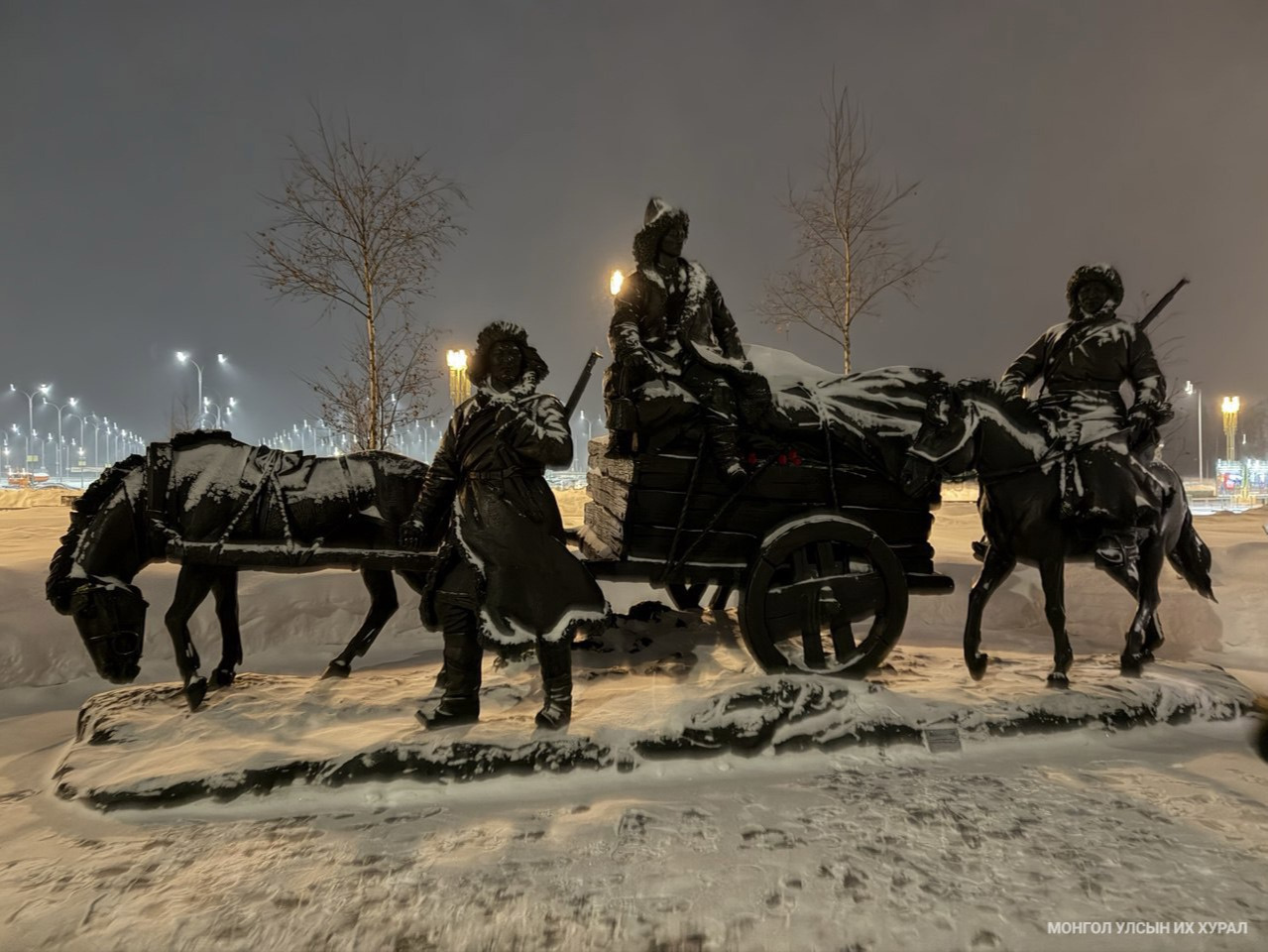 “Монгол цэргүүд” хэмээх хөшөөнд Ховд аймгийн Манхан сумын малчин, Монгол Улсын Хөдөлмөрийн баатар, гурван удаагийн Сүхбаатарын одонт Лувсангийн 18 настай байх үеийн цэл залуу дүр төрхийг мөнхөлжээ. Тэрбээр 1942 онд 1200 гаруй тэмээ бүхий жингийн цувааг ахлан, фронтод хүргэх бэлгийн ачааг Манхан сумаас Алтайн хязгаарын Бийск хотноо хүргэж өгчээ. Олон хоног, сар хүнд хэцүү замыг туулан асар урт тэмээн жингийн цувааг хөтөлж, монголчуудын чин сэтгэлийн тусламжийг Оросын ард түмэнд авчирсан энэ гайхалтай намтар түүхтэй хүн хэмээн Улсын Их Хурлын дэд дарга Б.Пүрэвдорж танилцуулаад, монгол хүний бодит дүрээр бүтээгдсэн хөшөө ОХУ-д цор ганц гэдгийг онцлов.