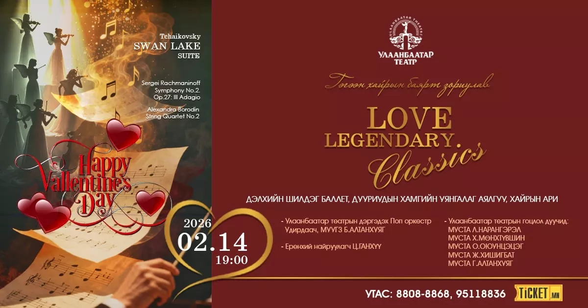 Жил ирэх тутам өргөн дэлгэр тэмдэглэдэг болоод буй Валентины баярын өдөр хаана ямар урлагийн тоглолт үзэж болохыг танилцуулж байна.