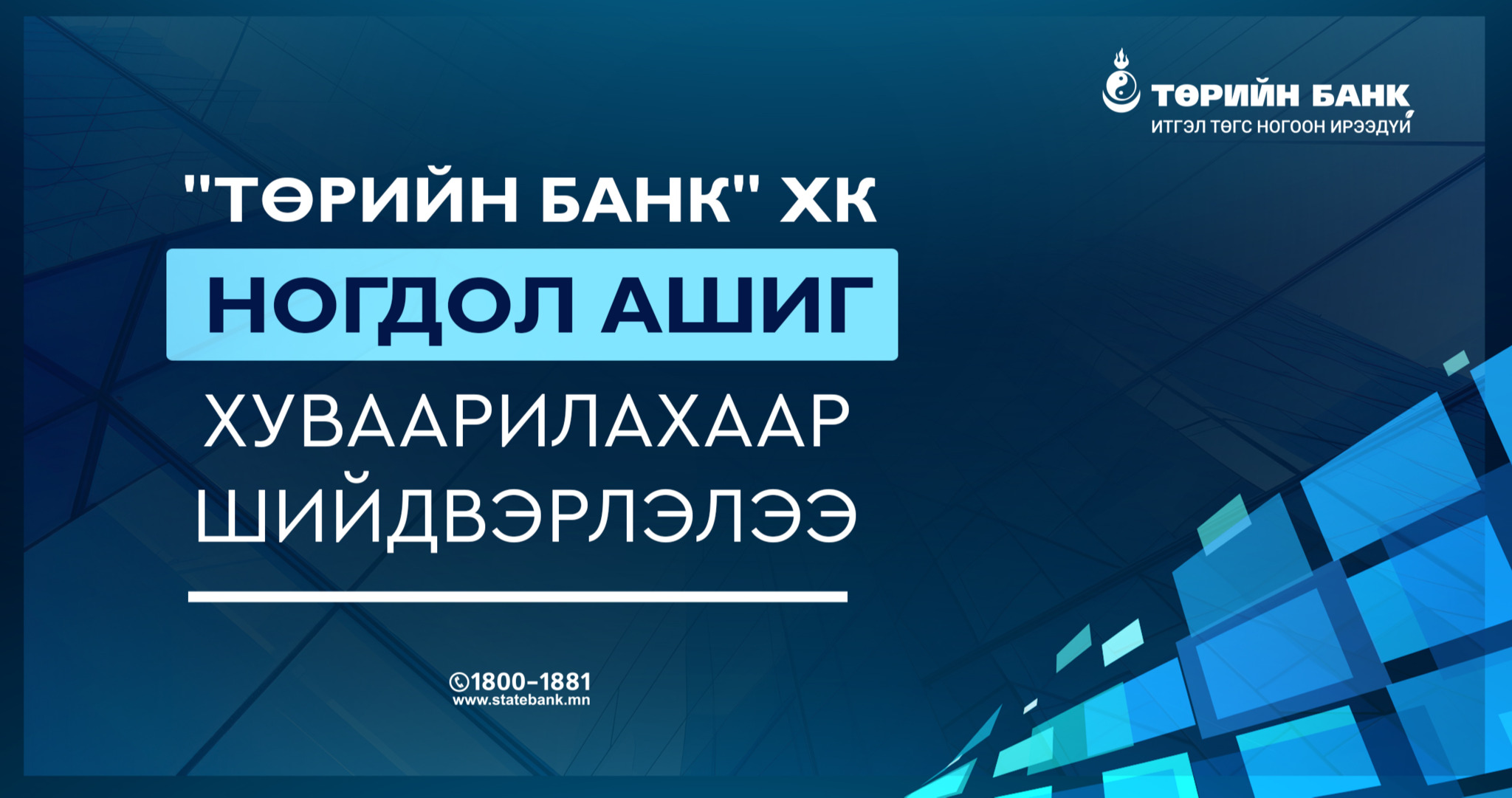“Төрийн банк” ХК-ийн Төлөөлөн удирдах зөвлөлийн 2026 оны 2 дугаар сарын 13-ны өдрийн 19 дүгээр тогтоолоор компанийн 2025 оны жилийн эцсийн санхүүгийн тайлангийн /аудитлагдаагүй/ цэвэр ашгаас нэгж хувьцаанд 51.8 төгрөг, нийт 39.1 тэрбум төгрөгийг хувьцаа эзэмшигчдэд ногдол ашиг хэлбэрээр хуваарилахаар шийдвэрлэлээ.