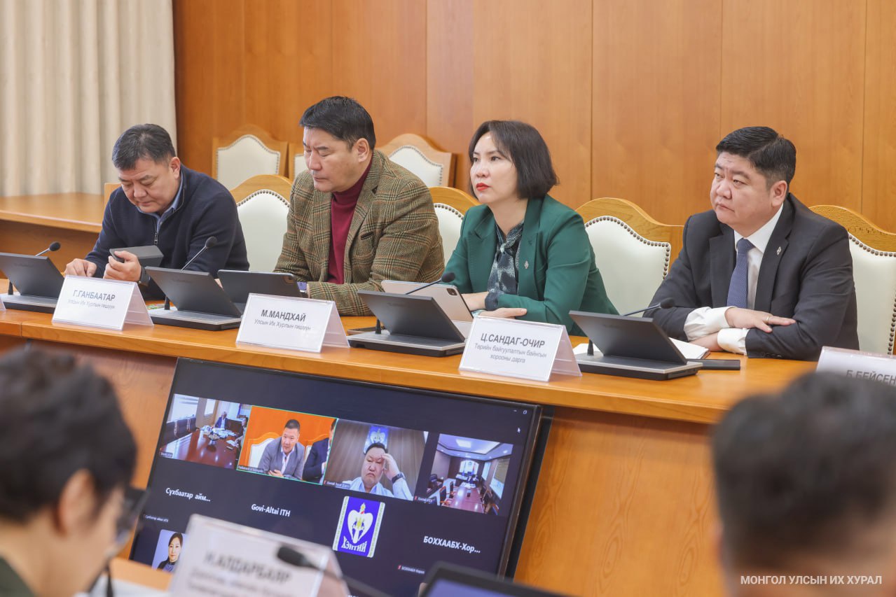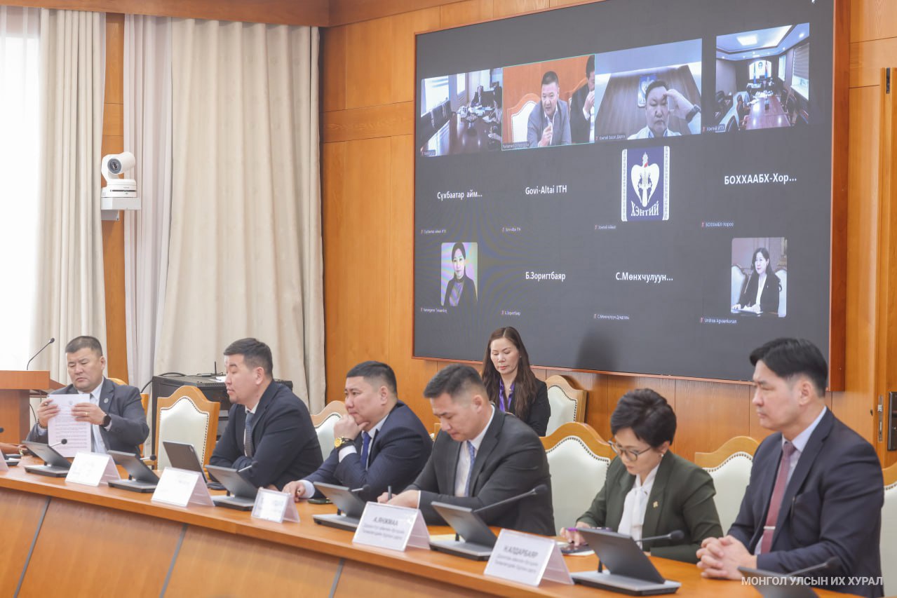 Улсын Их Хурлын даргын 523 дугаар захирамжаар байгуулагдсан хөдөөгийн хөгжлийн асуудлаар санал, дүгнэлт гаргаж, холбогдох хууль тогтоомжийн төсөл боловсруулах ажлын хэсэг өнөөдөр (2026.02.28) аймгуудийн иргэдийн Төлөөлөгчдийн хурал (ИТХ)-ын дарга, Засаг дарга нартай санал солилцох уулзалт хийлээ. Уулзалтад Улсын Их Хурлын Байгаль орчин, хүнс, хөдөө аж ахуйн, Төрийн байгуулалтын байнгын хороодын дарга Б.Бейсен, Ц.Сандаг-Очир болон ажлын хэсгийн гишүүд, Архангай, Баян-Өлгий, Баянхонгор, Булган, Говьсүмбэр, Дархан-Уул, Дорноговь, Орхон, Сэлэнгэ, Төв, Ховд, Хэнтий, Увс аймгийн ИТХ-ын дарга, Засаг дарга нар танхимаар, Говь-Алтай, Дорнод, Дундговь, Завхан, Өвөрхангай, Өмнөговь, Сүхбаатар, Хөвсгөл аймгийн удирдлагууд цахимаар оролцов.