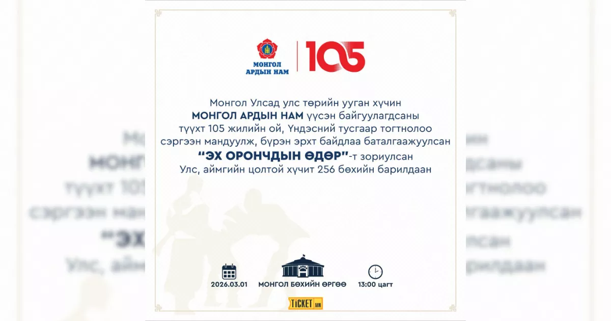 -"Монгол бөхийн өргөө"-нд, 13:00 цагаас, ЭХ ОРОНЧДЫН ӨДӨРТ ЗОРИУЛСАН БАРИЛДААН