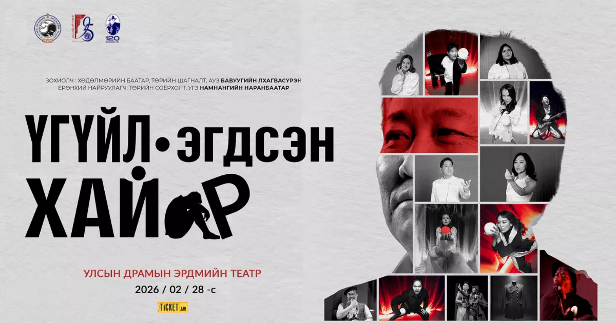 -"Улсын Драмын Эрдмийн Театр"-т 18:00 цагаас, "Үгүйлэгдсэн хайр" уянгын драм
