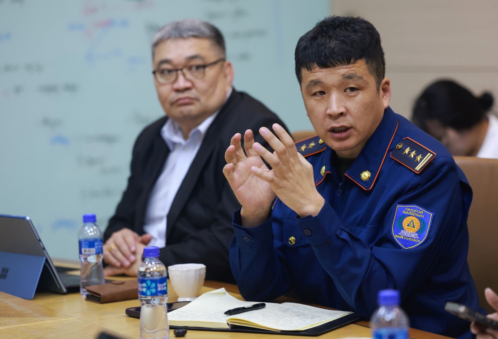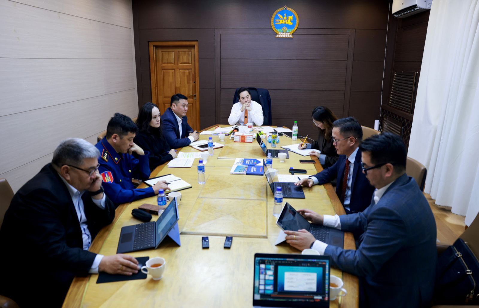 Уулзалтад Хот байгуулалт, барилга орон сууцжуулалтын яамны Барилга барилгын материалын бодлого, зохицуулалтын газрын Барилга материалын үйлдвэрлэлийн хэлтсийн дарга Д.Батзориг, ОБЕГ-ын Гал түймэртэй тэмцэх газрын Гал түймрийн улсын хяналтын хэлтсийн дарга Д.Баян-Эрдэнэ, НОБГ-ын дарга, хурандаа Г.Галбадрах, Нийслэлийн хяналт шалгалтын газрын дарга С.Энхбаяр, Барилгын хөгжлийн төвийн Норм, нормативын хэлтсийн дарга Д.Алтанхуяг оролцлоо.