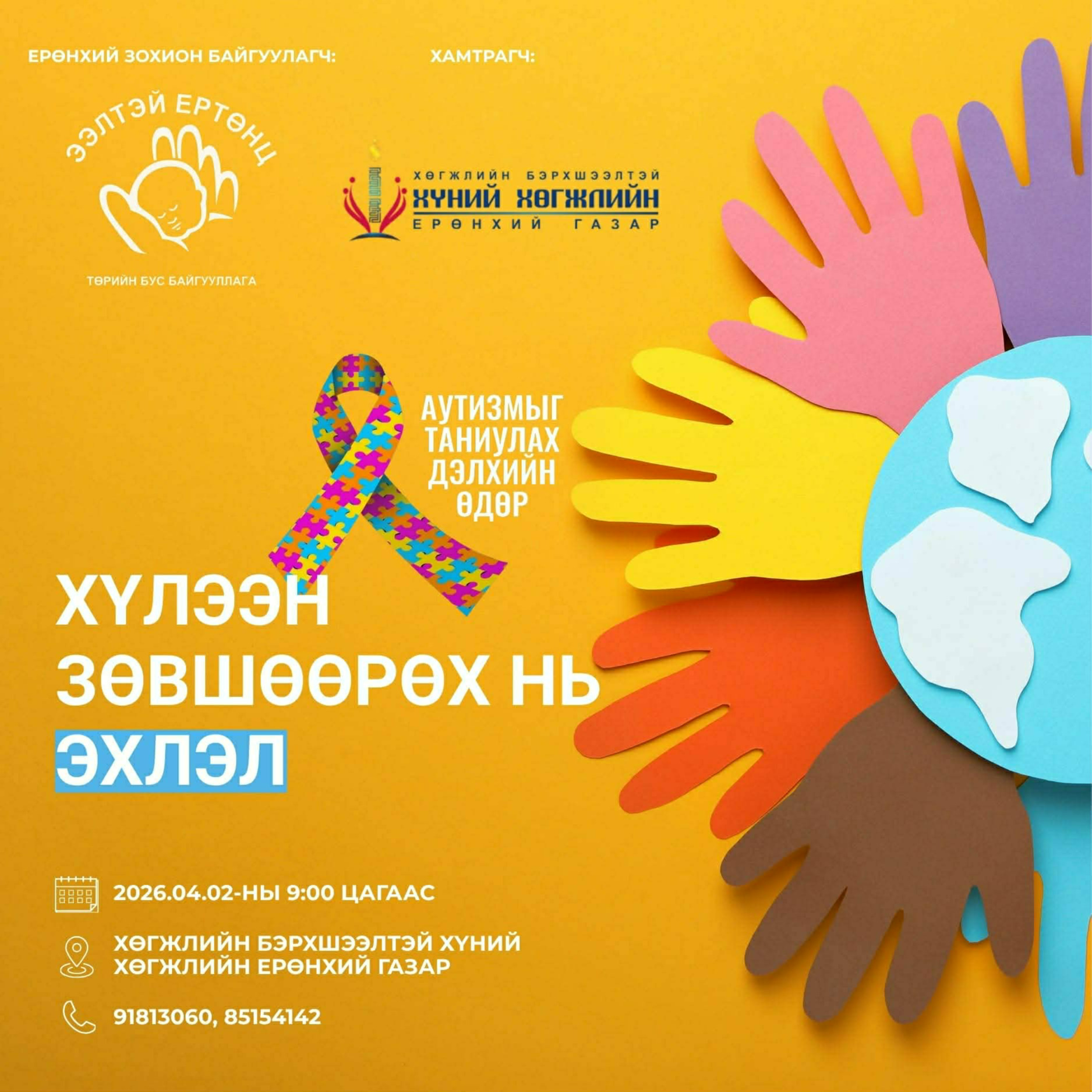 Тус өдөрлөгийг “Ээлтэй Ертөнц” төрийн бус байгууллага санаачлан, Хөгжлийн бэрхшээлтэй хүний хөгжлийн ерөнхий газартай хамтран зохион байгуулж байгаа бөгөөд аутизмын чиглэлээр ажиллаж буй дотоод, гадаадын 12 илтгэгч бүхий олон салбарын мэргэжилтнүүдийн баг оролцоно.