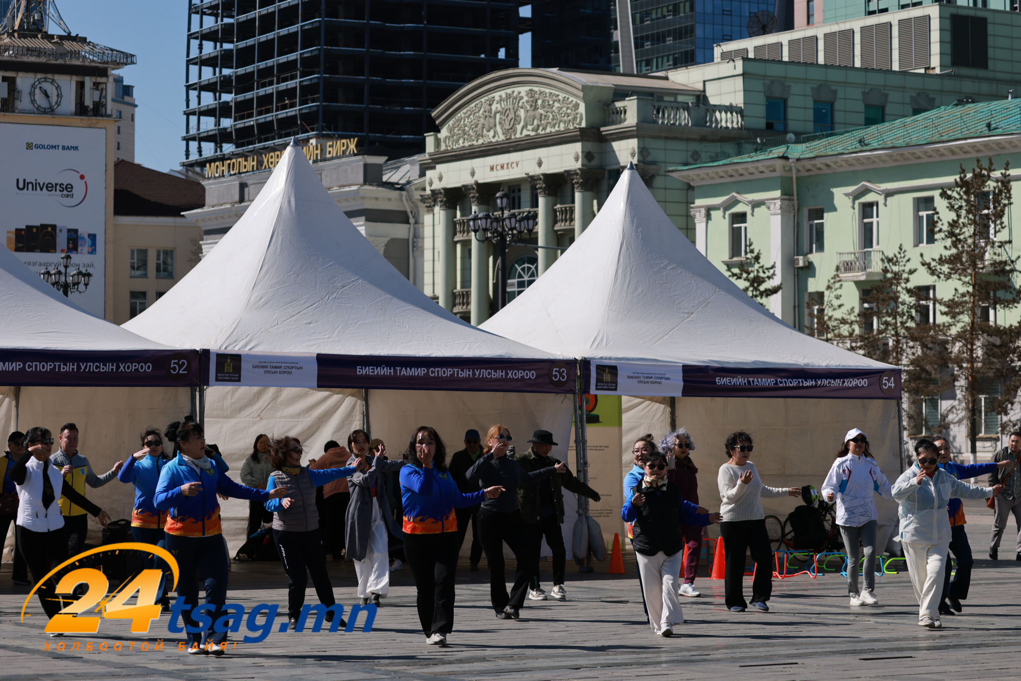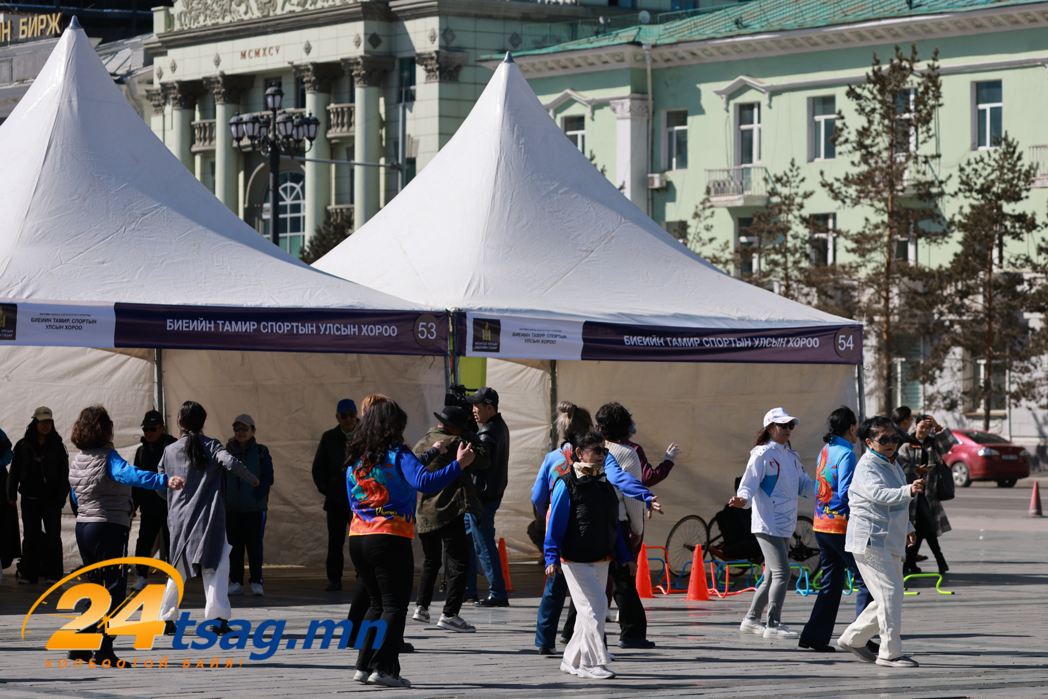 Сүхбаатарын талбайд нийгмийн эрүүл мэнд, нийтийн биеийн тамирыг сурталчилан таниулах нээлттэй хаалганы өдөрлөг болж байна. Өдөрлөгийн үеэр эрт илрүүлэг, халдварт өвчнөөс урьдчилан сэргийлэх талаар үзлэг хийж, зөвлөгөө өгөх бөгөөд шатар, гар дээр суниалт, гийр, гар барилдаан, дээс, хариулаад шид төрлүүдээр тэмцээн зохион байгуулж байгаа юм. Ийнхүү тус өдөрлөгийн үеэрх 24 фотог хүргэж байна.