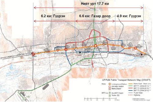 Метро нь Улаанбаатар хотын замын хөдөлгөөний гол ачааллыг үүрдэг Энхтайваны өргөн чөлөөний дагуу 17.7 км урттай, 14 өртөөтэй байгуулагдах ба зүүн 4 замаас баруун 4 зам хүртэлх хэсэг нь газар доорх, бусад хэсэг нь гүүрэн хэлбэртэй байх аж. Өөрөөр хэлбэл авто замаас бүрэн тусгаар систем байх учир түгжрэлд өртөхгүй, гэрлэн дохио хүлээж зогсохгүйгээр хүссэн газраа тогтмол цагт, найдвартай очдог болно гэсэн үг. Метро байгуулна гэхээр ганц метроны шугам бариад зогсохгүй, Улаанбаатар төмөр зам, автобус, тролейбусны маршруттай холбож, том хэмжээний авто зогсоолыг төлөвлөх зэргээр иргэдийн бүхий л төрлийн тээврээр ая тухтай зорчих, тэдгээр хооронд саадгүй шилжин суух, мөн явганаар явах орчин нөхцлийг хангах нийтийн тээврийн цогц сүлжээний шийдлийг судалгааны тайланд тусгасан байна.