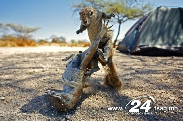 буландаа онцолж байна. Амьтад хайр сэтгэл, газар нутаг, хоол хүнс, үр зулзага гээд олон зүйл дээр үл ойлголцдог. Харин хүнээс ялгаатай нь үүнийгээ байгалийн хуулиар буюу хүчтэй нь хүчгүйгээ дийлэх замаар шийдвэрлэдэг. Амьтад зодолдох үед авсан 24 гайхамшигт зургийг энэ удаагийн "Солиотой 24" буландаа онцолж байна.