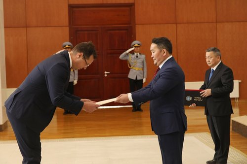 Холбооны Бүгд Найрамдах Герман улсаас Монгол Улсад суух Онц бөгөөд Бүрэн эрхт Элчин сайд Ёорн Розенберг Итгэмжлэх жуух бичгээ өргөн барилаа.