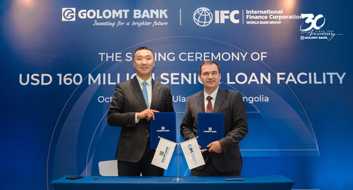 Голомт банкны гүйцэтгэх захирал А.Одонбаатар болон Монголын Ногоон Барилгын Хүрээлэнгийн гүйцэтгэх захирал Ц.Батгэрэл нар хамтын ажиллагааны санамж бичгийг есдүгээр сарын 16-нд үзэглэлээ.
